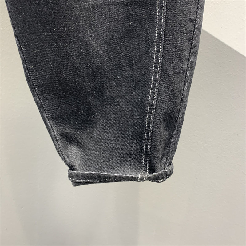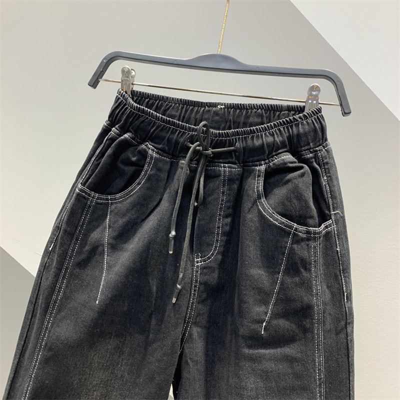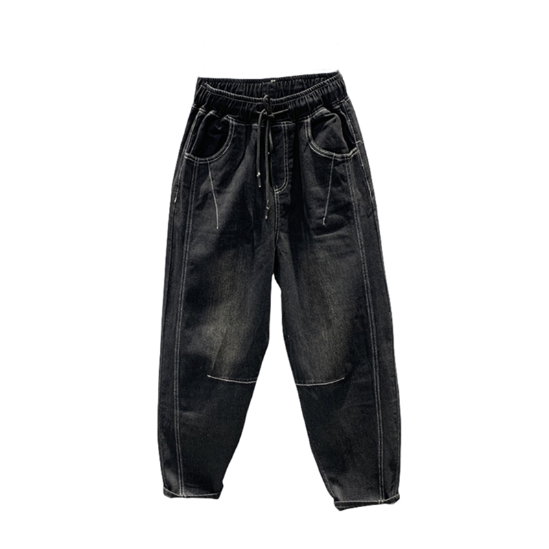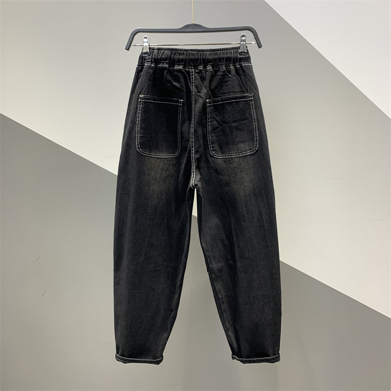 松紧抽绳做旧水洗牛仔哈伦裤女2026年春季新款百搭宽松显瘦萝卜裤