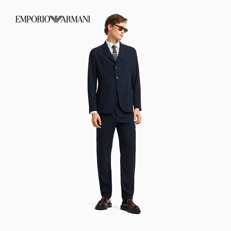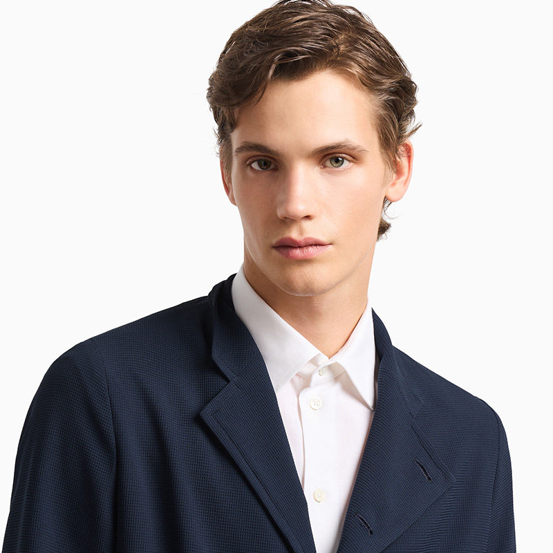 阿玛尼男士珠地布侧门襟西装外套