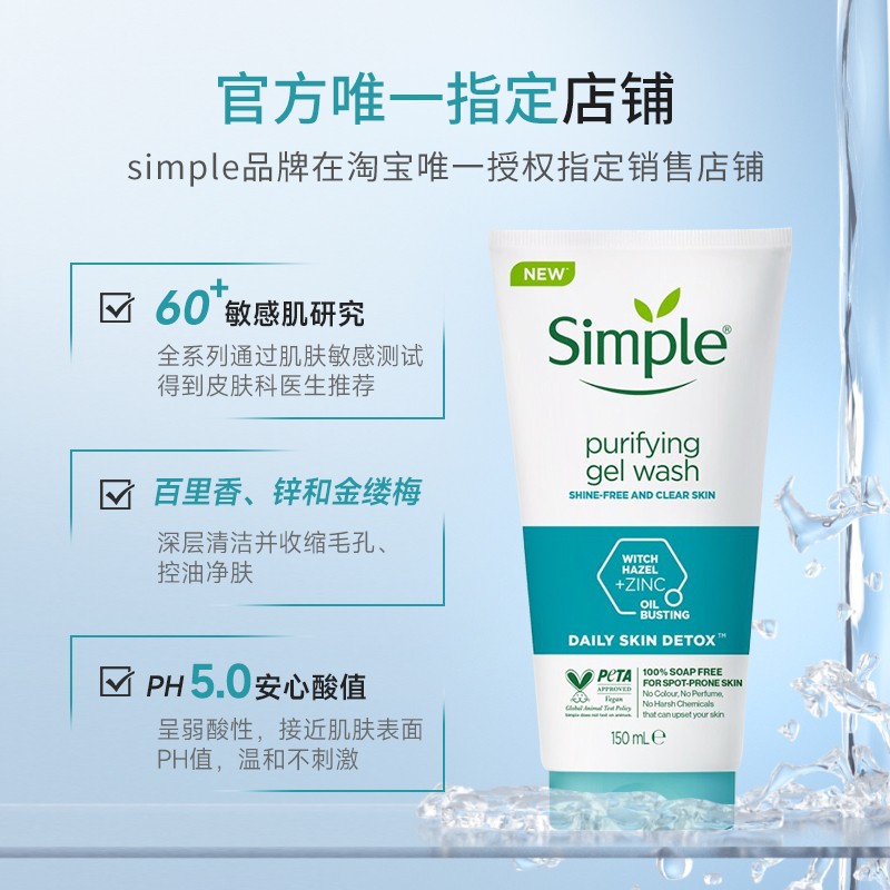 英国Simple洗面奶清妍深层清洁温和保湿改善肤色不紧绷洁面乳