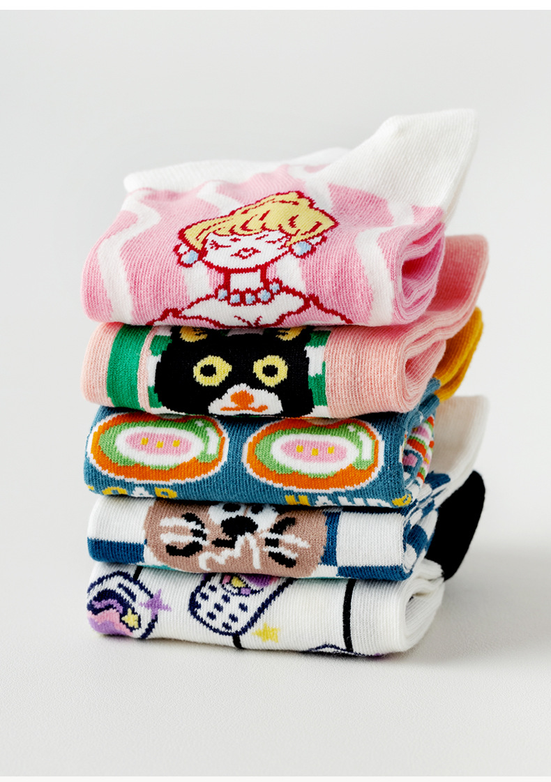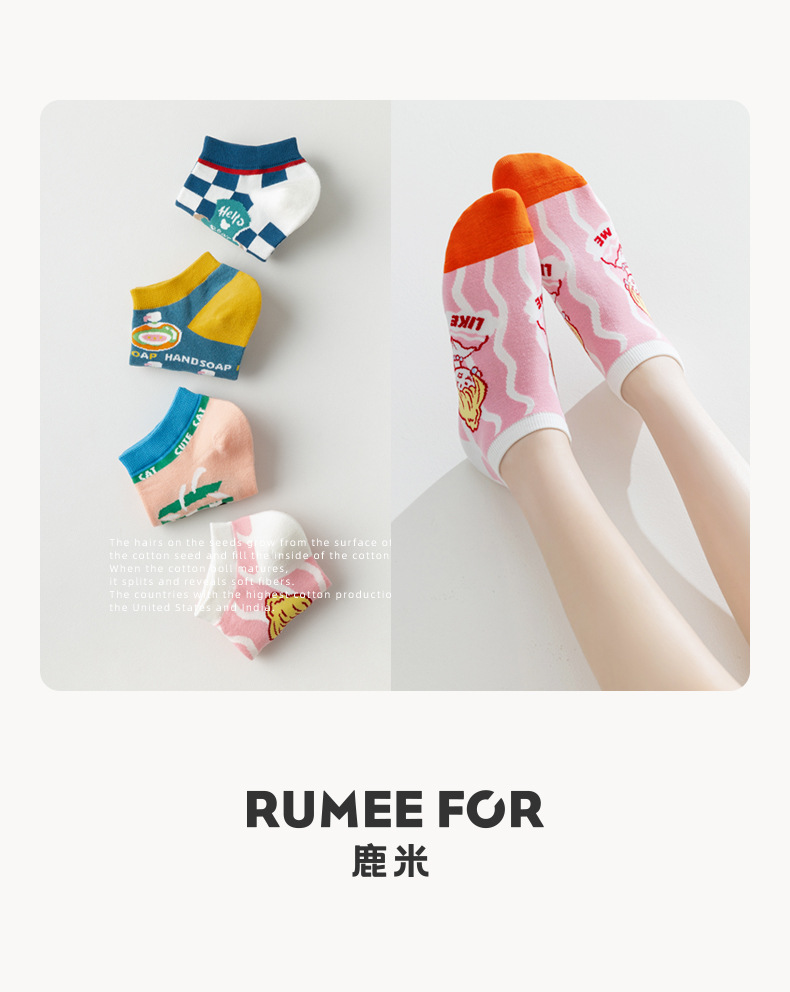 5双ins潮可爱插画纯棉浅口短袜女款夏季薄款短筒袜子男生青少年