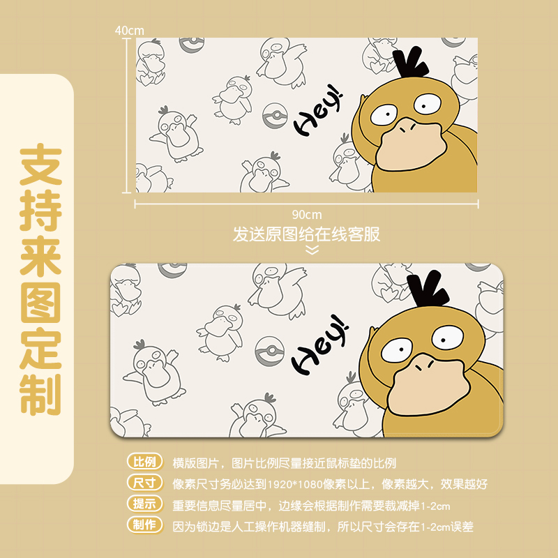 鼠标垫子女生超大键盘垫学生写字桌垫可爱卡通可达鸭办公桌桌面垫