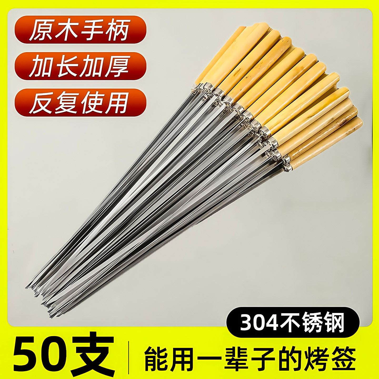 不锈钢烧烤签扁签户外羊肉串烤肉签子钢签铁签圆签全套工具烧烤针