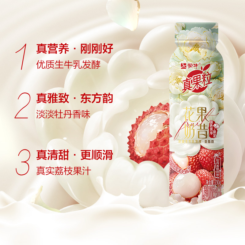 蒙牛真果粒花果奶昔牡丹荔枝酸奶