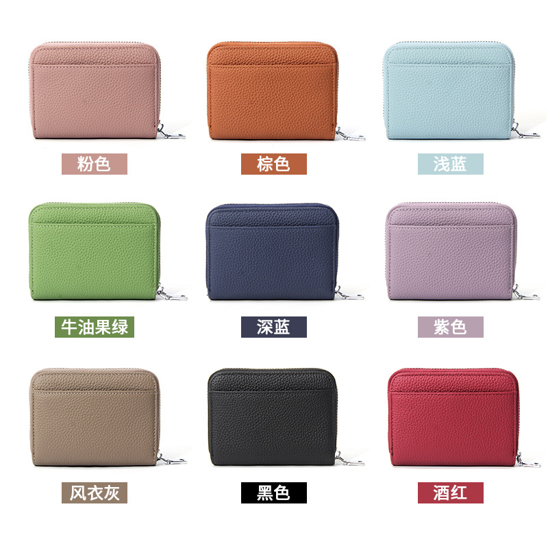 日式头层牛皮女士钱包短款真皮RFID分隔层硬币袋收纳卡片零钱包
