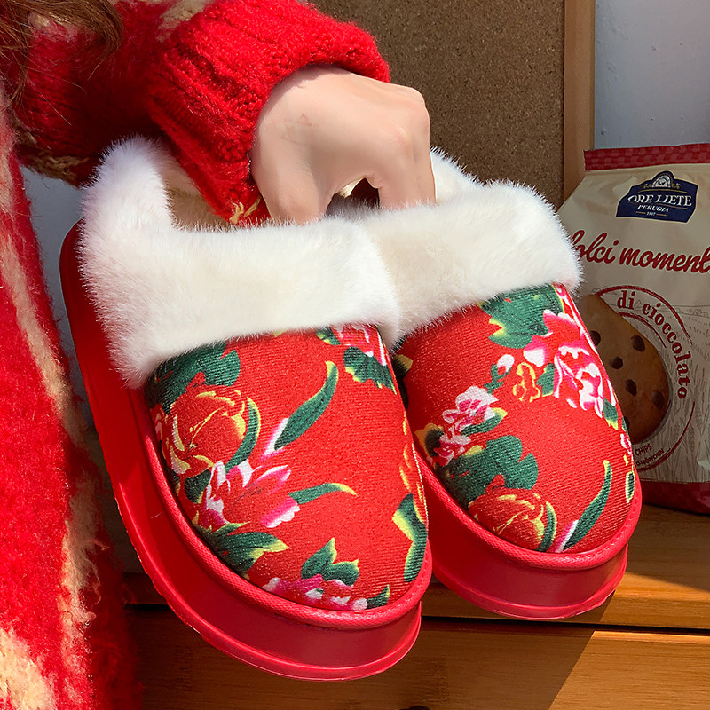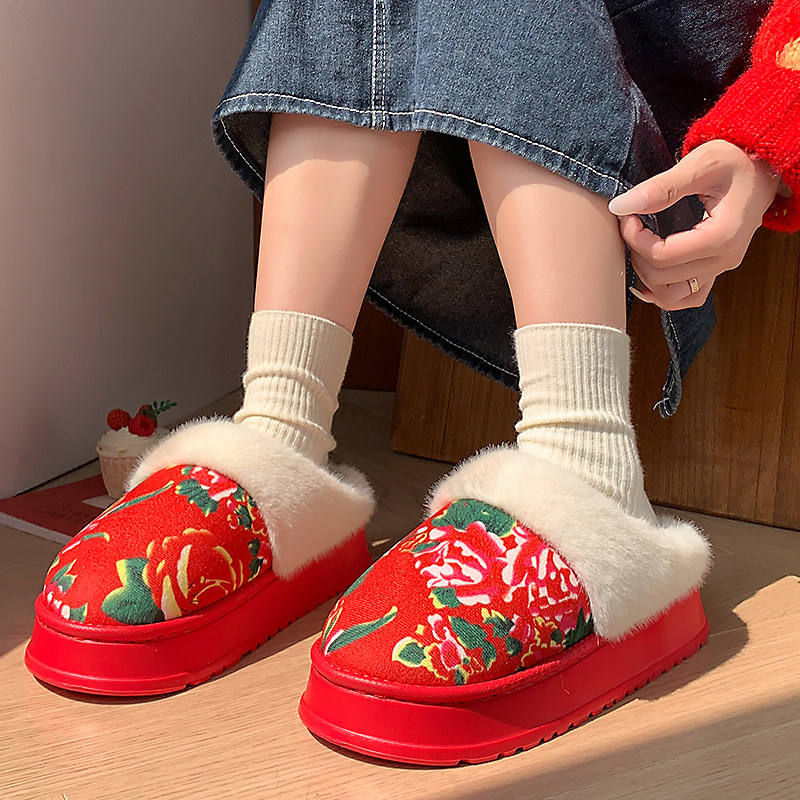 东北大花棉拖鞋女士冬季2025新款毛绒保暖厚底防滑家居室内毛拖鞋