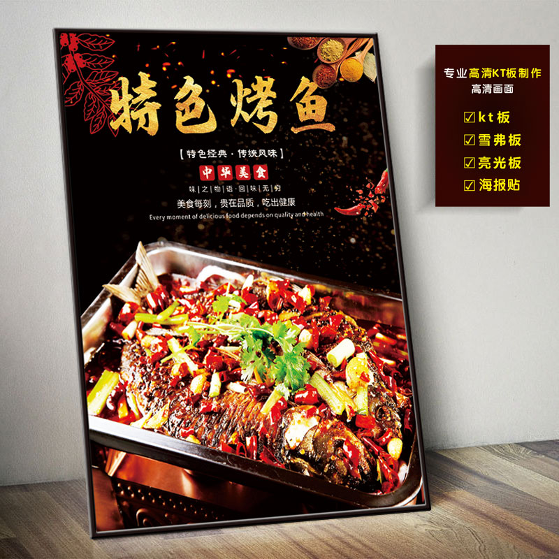 石锅鱼海报贴纸肥肠鱼装饰挂画KT板猪肚鸡甲鱼鸡煲饭店墙面广告图