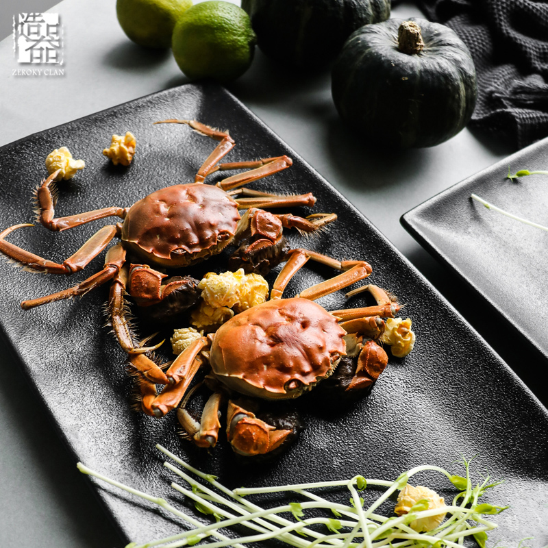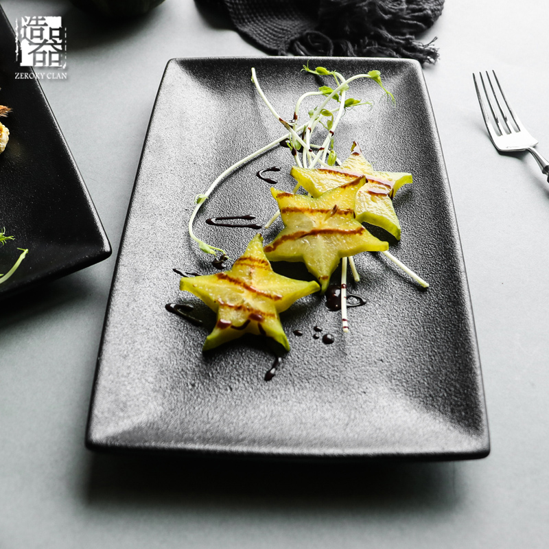 造器装菜瓷盘家用欧式长方形蒸鱼盘子陶瓷大号创意个性黑色小盘子