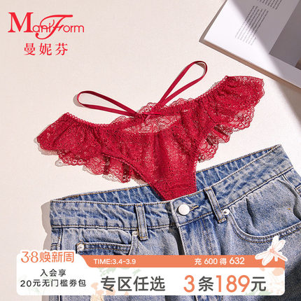 曼妮芬性感蕾丝低腰内裤女士内搭T裤纯棉全棉底裆底裤20710226