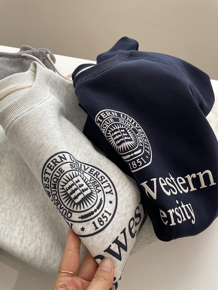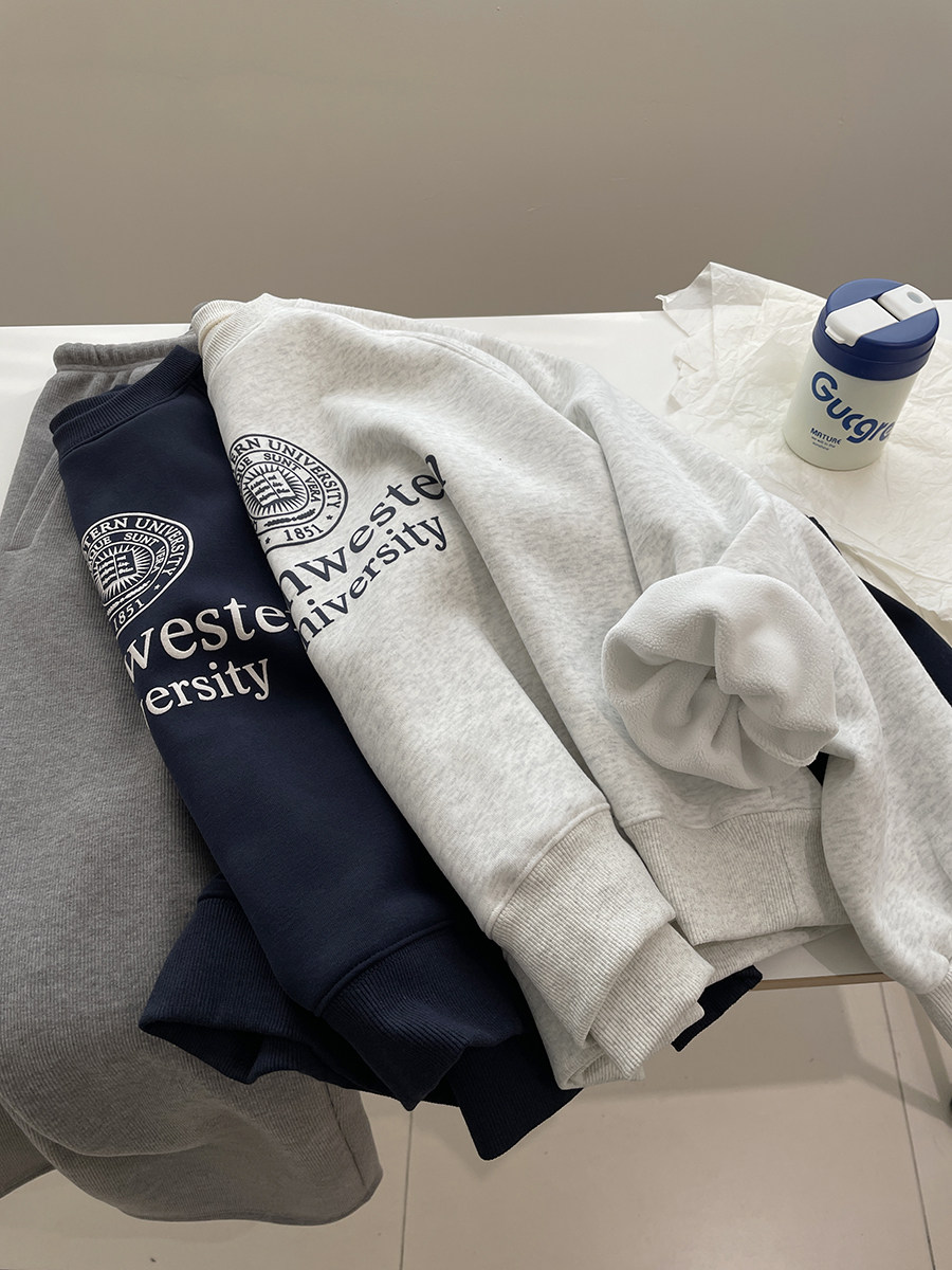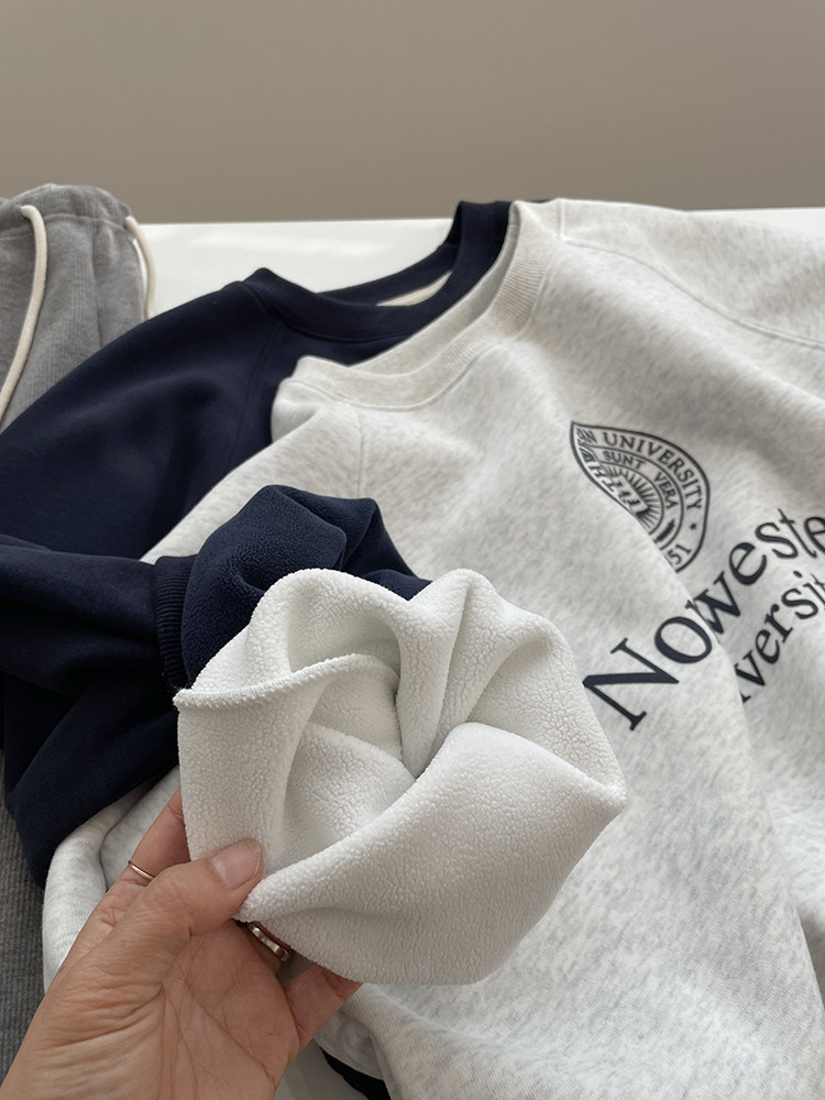美式复古圆领加绒卫衣女!秋冬学院减龄字母印花宽松套头休闲上衣