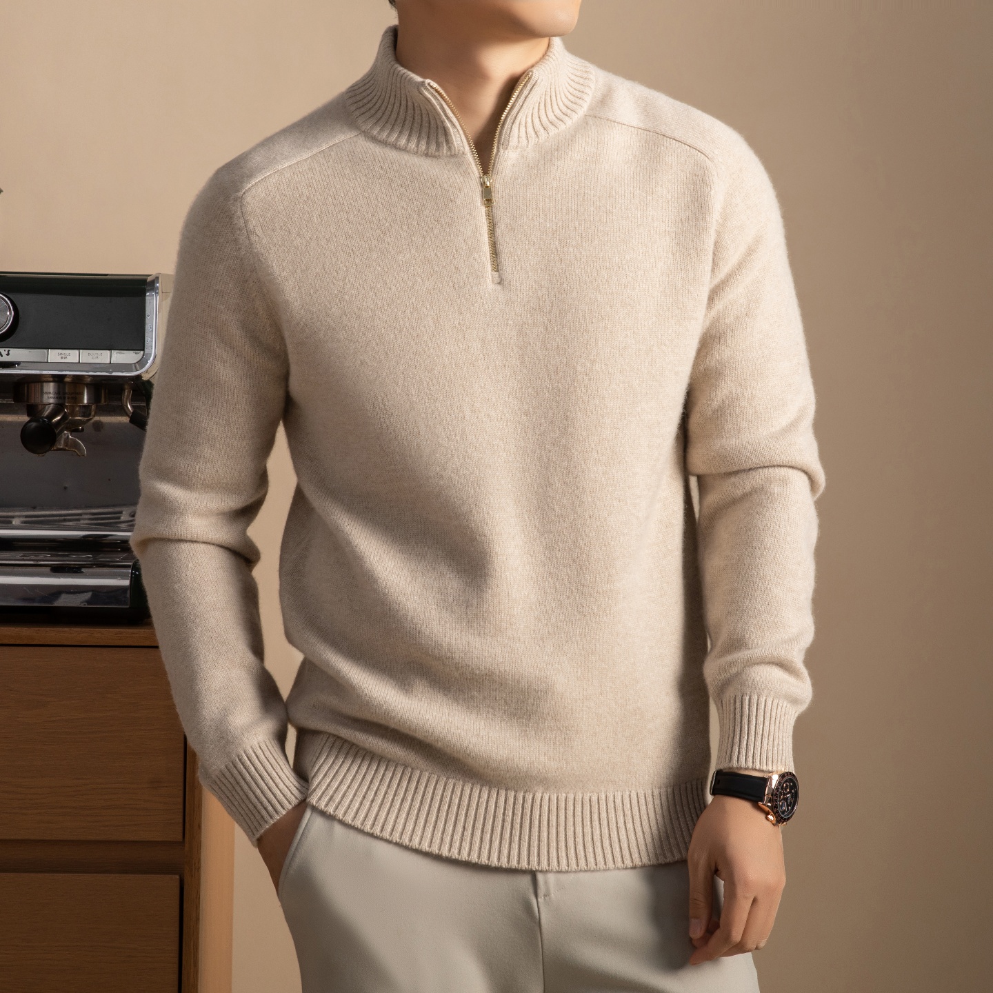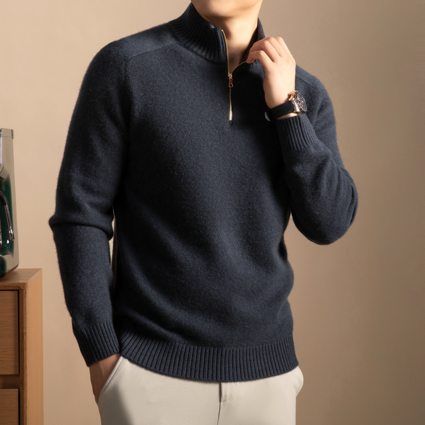 春竹世家男士纯山羊绒衫半高拉链领2025秋冬季新款加厚针织衫毛衣