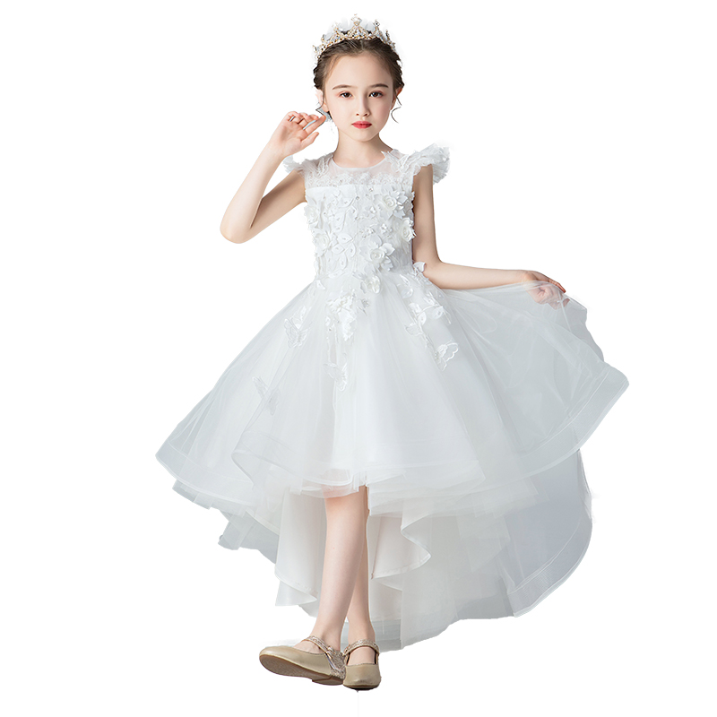 小女孩公主裙女童生日白色走秀花童礼服主持人儿童钢琴演出服表演