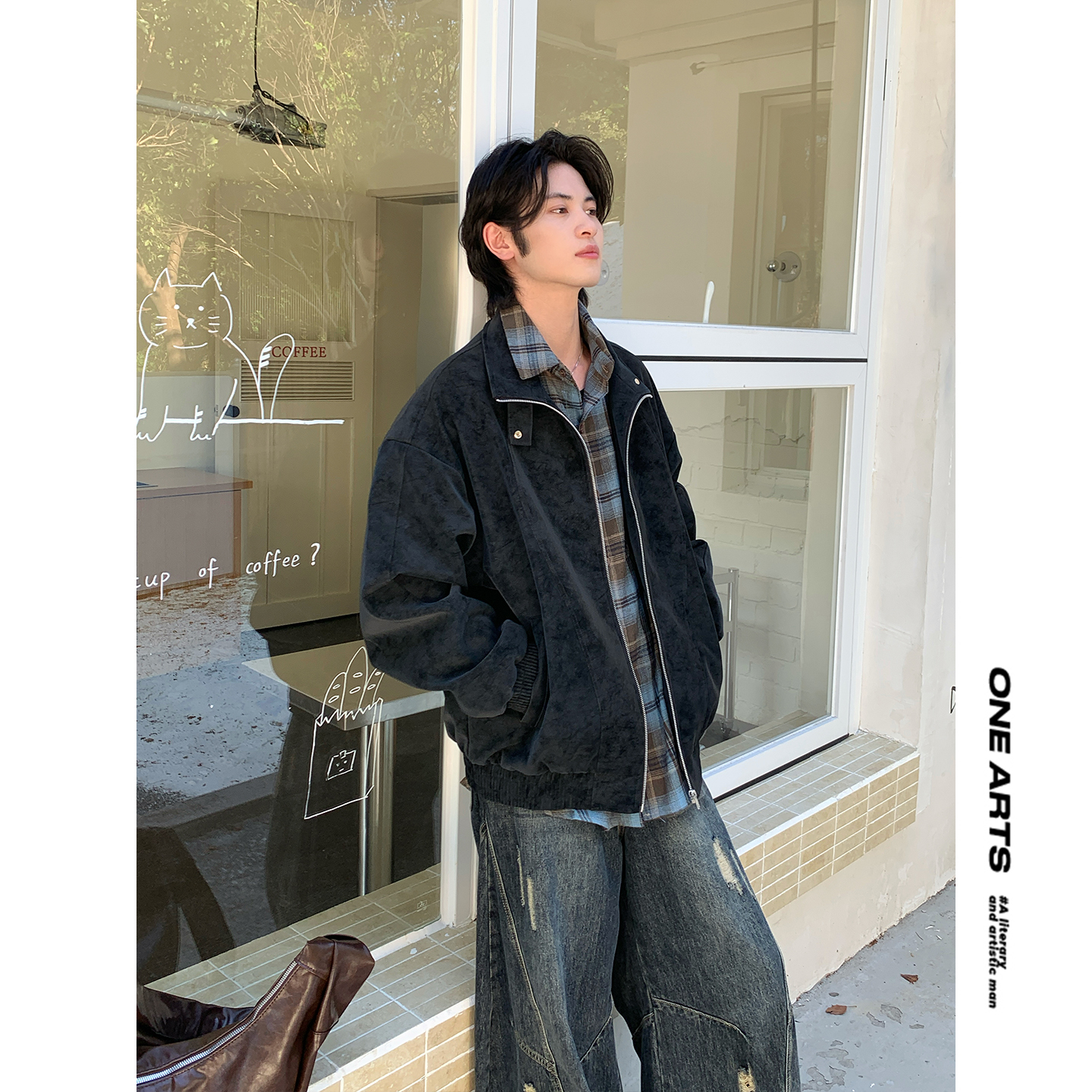 ONEARTS外套男款秋美式扎染重磅立领夹克情侣装cleanfit宽松皮衣