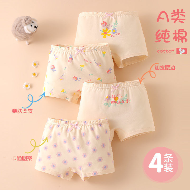 女童内裤平角纯棉短裤儿童四角底裤女宝宝小女孩100%全棉不夹屁屁