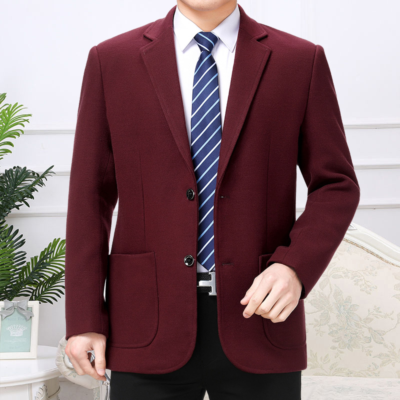 爸爸装灯芯绒西装外套男春秋新款中年男士休闲纯棉粗条绒西服单西