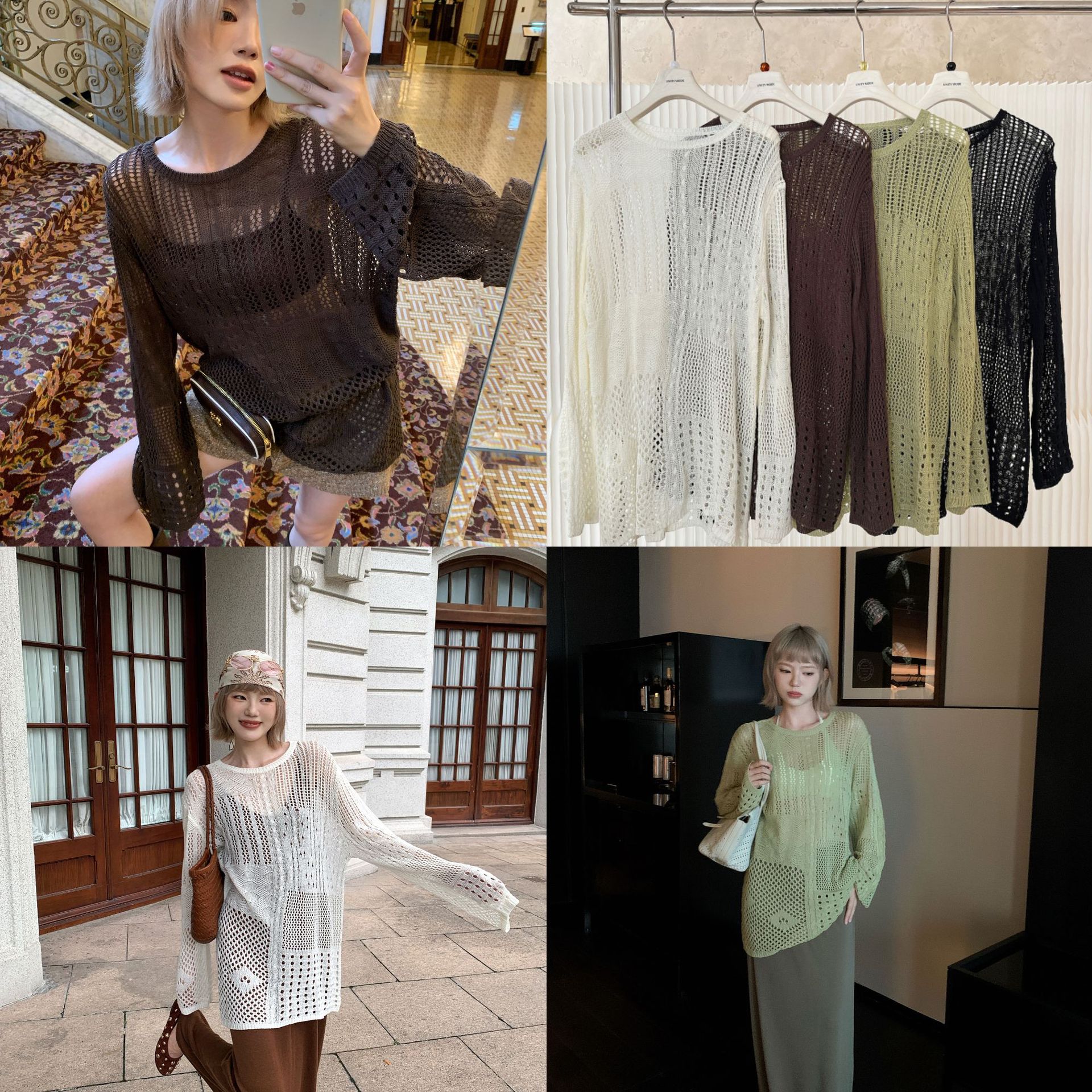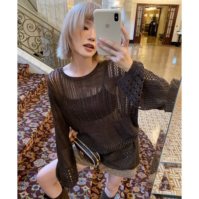 镂空圆领针织罩衫女秋设计感慵懒休闲长袖上衣