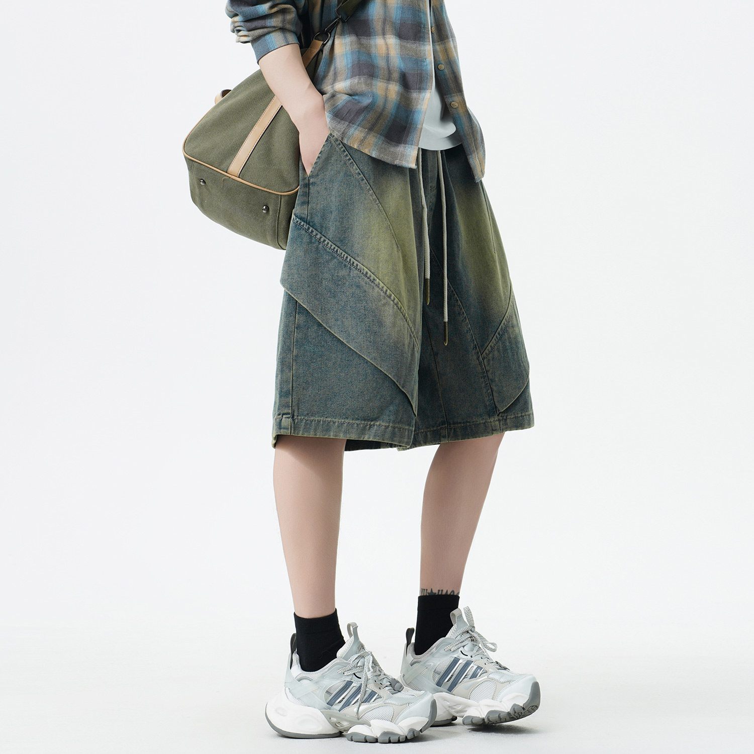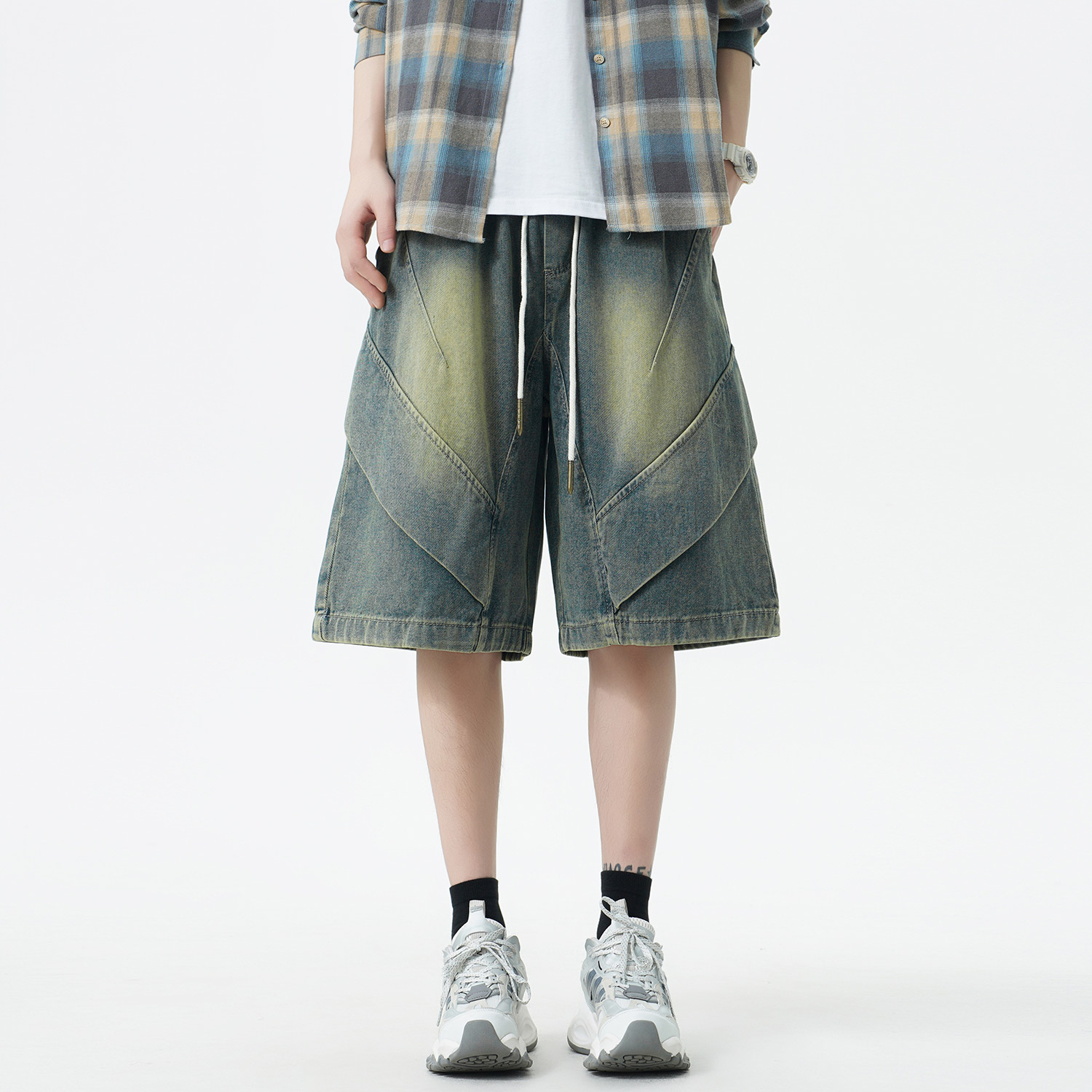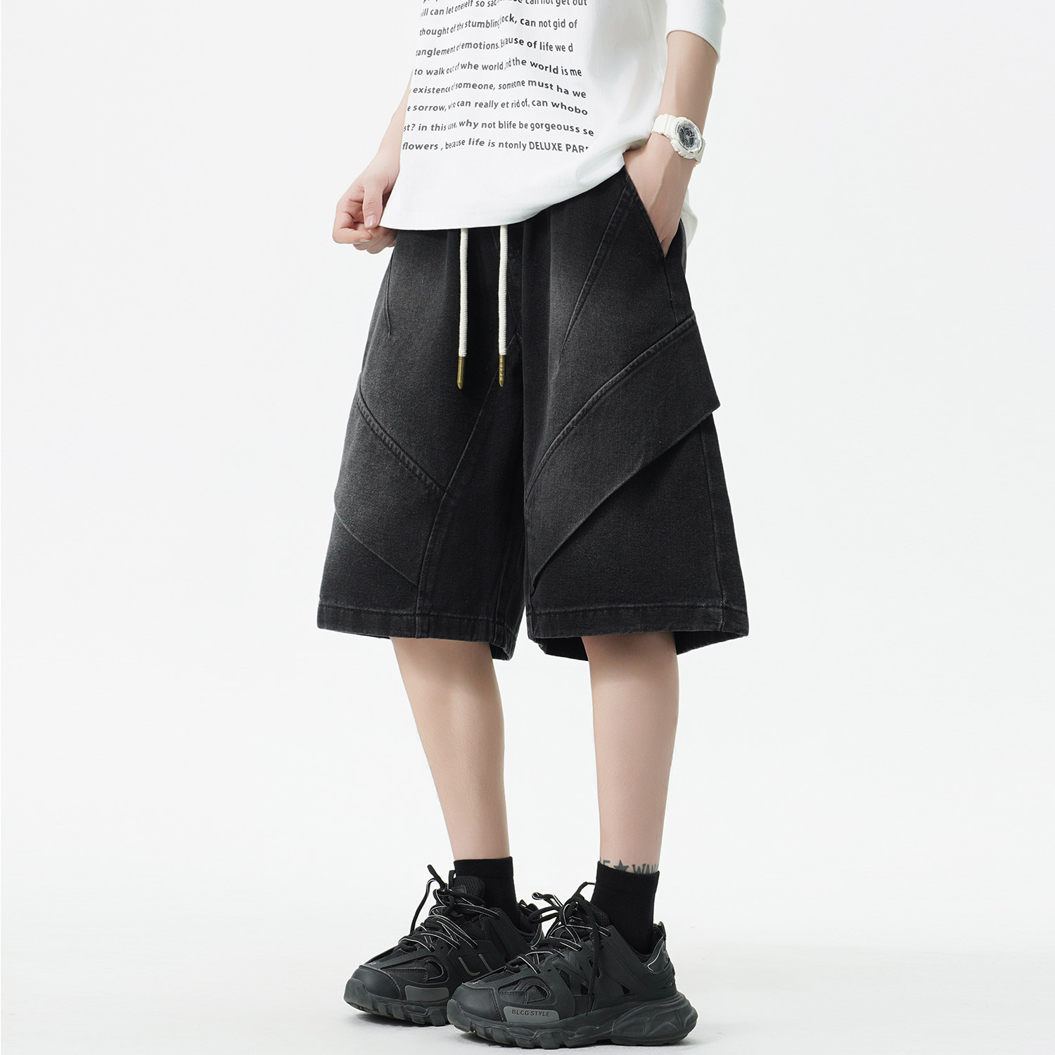 Nuthink美式复古潮牌牛仔裤短裤洗水宽松直筒五分裤男2025夏新款