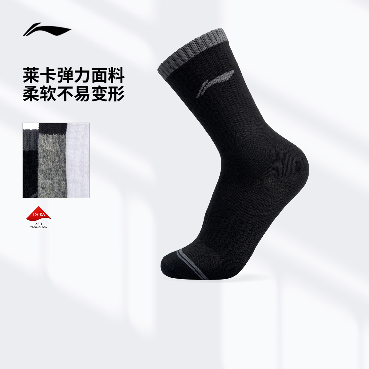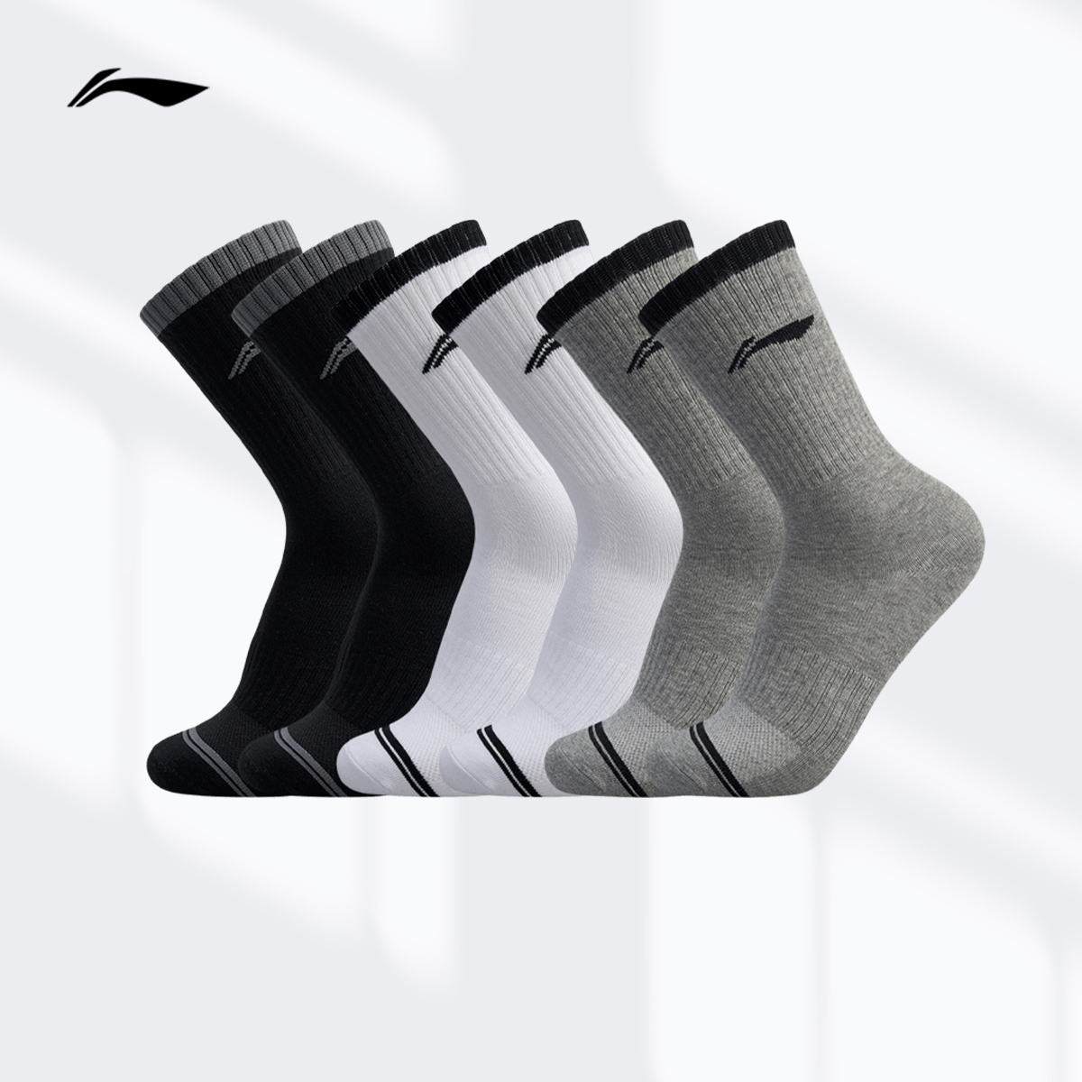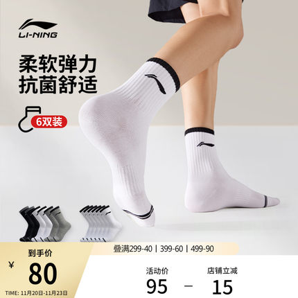 李宁袜子男女款跑步吸汗透气抗菌组合短袜中长袜运动健身舒适棉袜