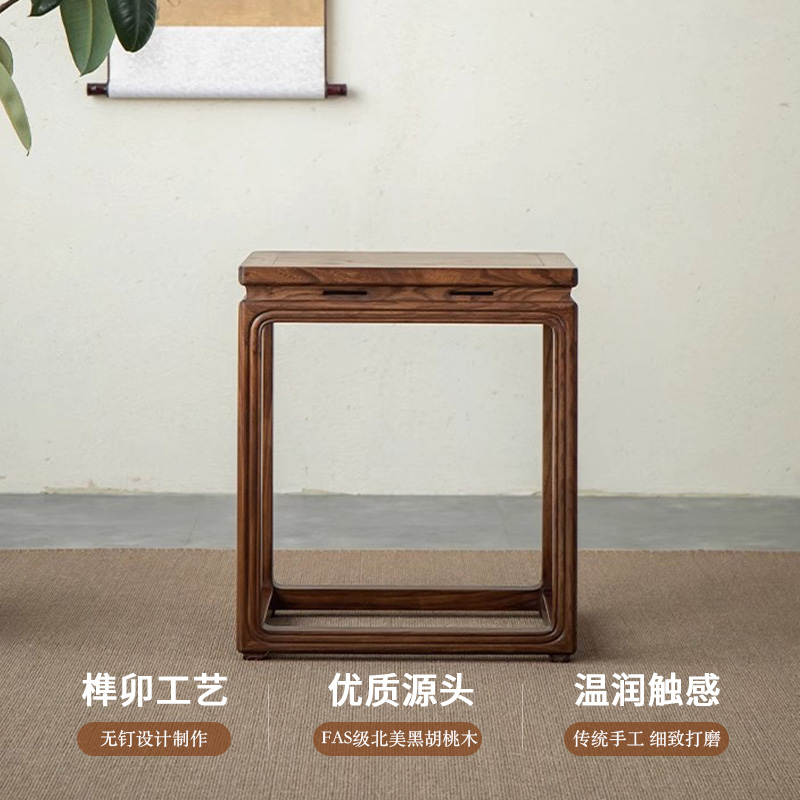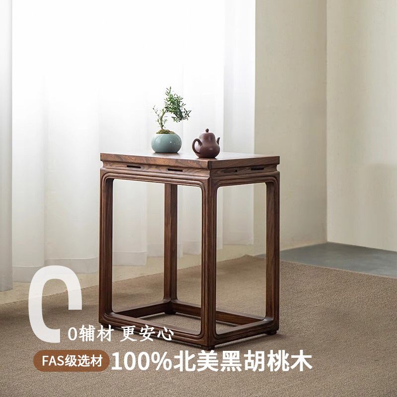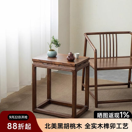 南家新中式北美黑胡桃木实木茶几边几沙发床头方几角几家用客厅
