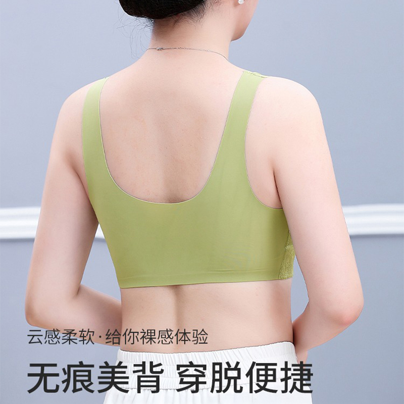 中年妇女妈妈聚拢胸罩背心式蕾丝内衣薄款前扣文胸无钢圈老人无痕