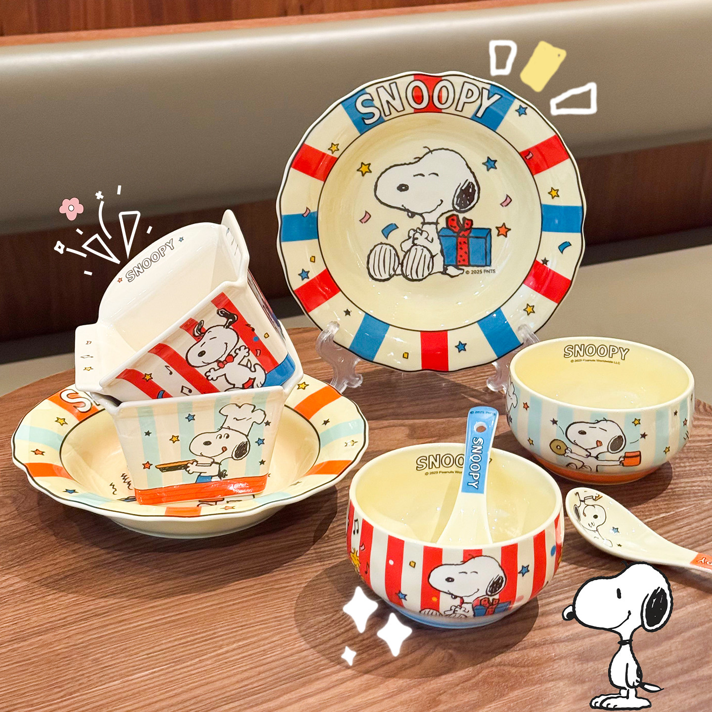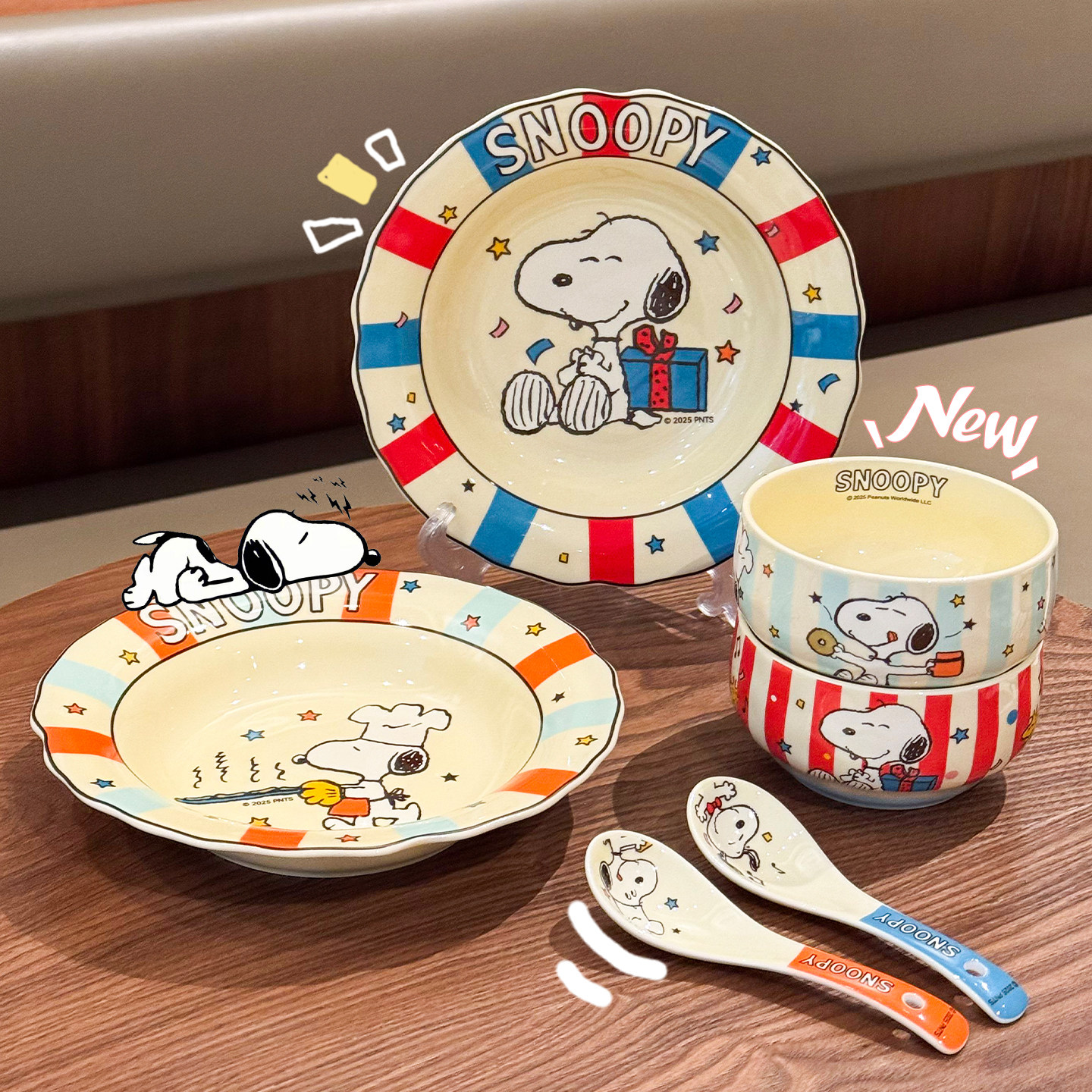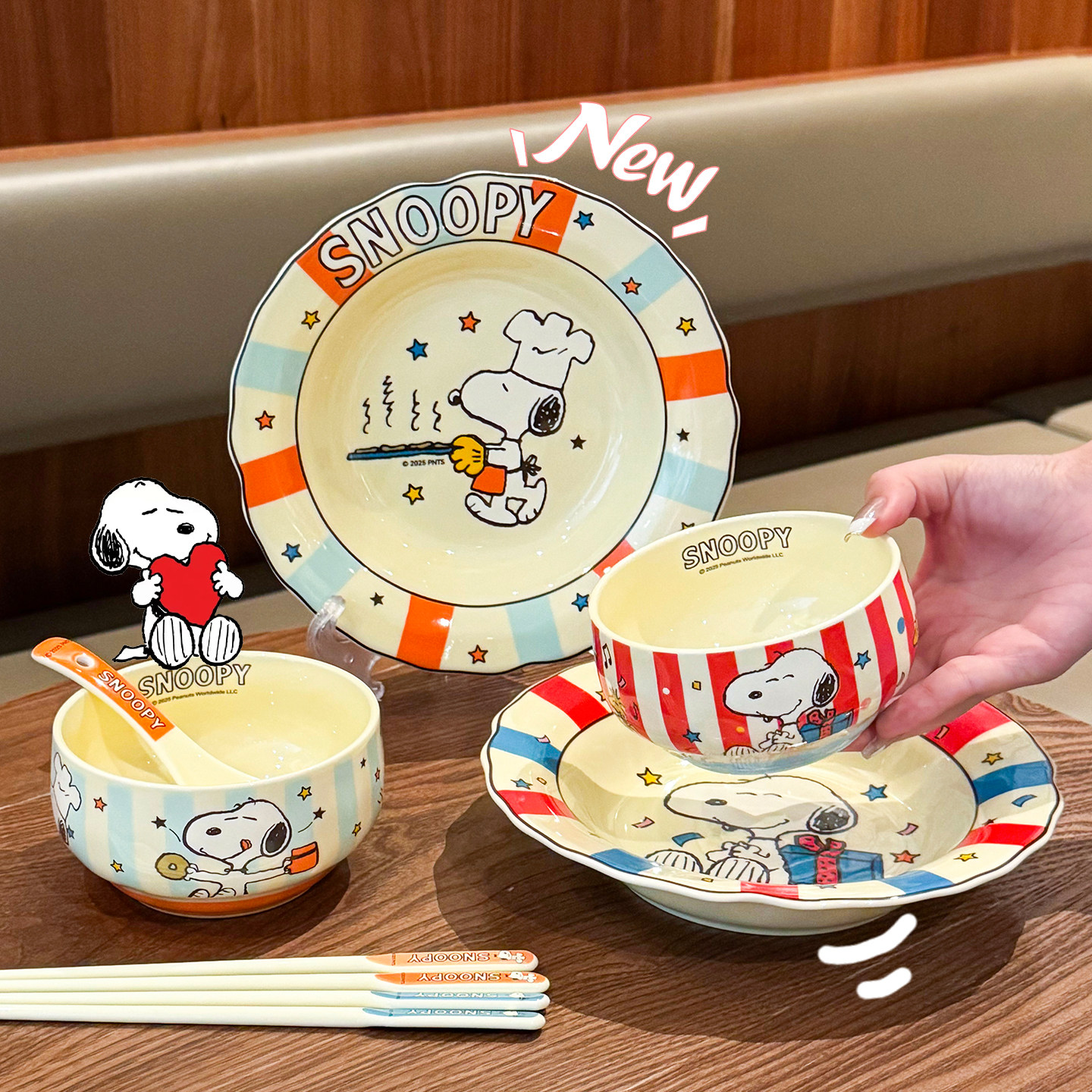 史努比联名陶瓷碗盘餐具家用2025新款高颜值可爱碗盘筷勺吃饭专用