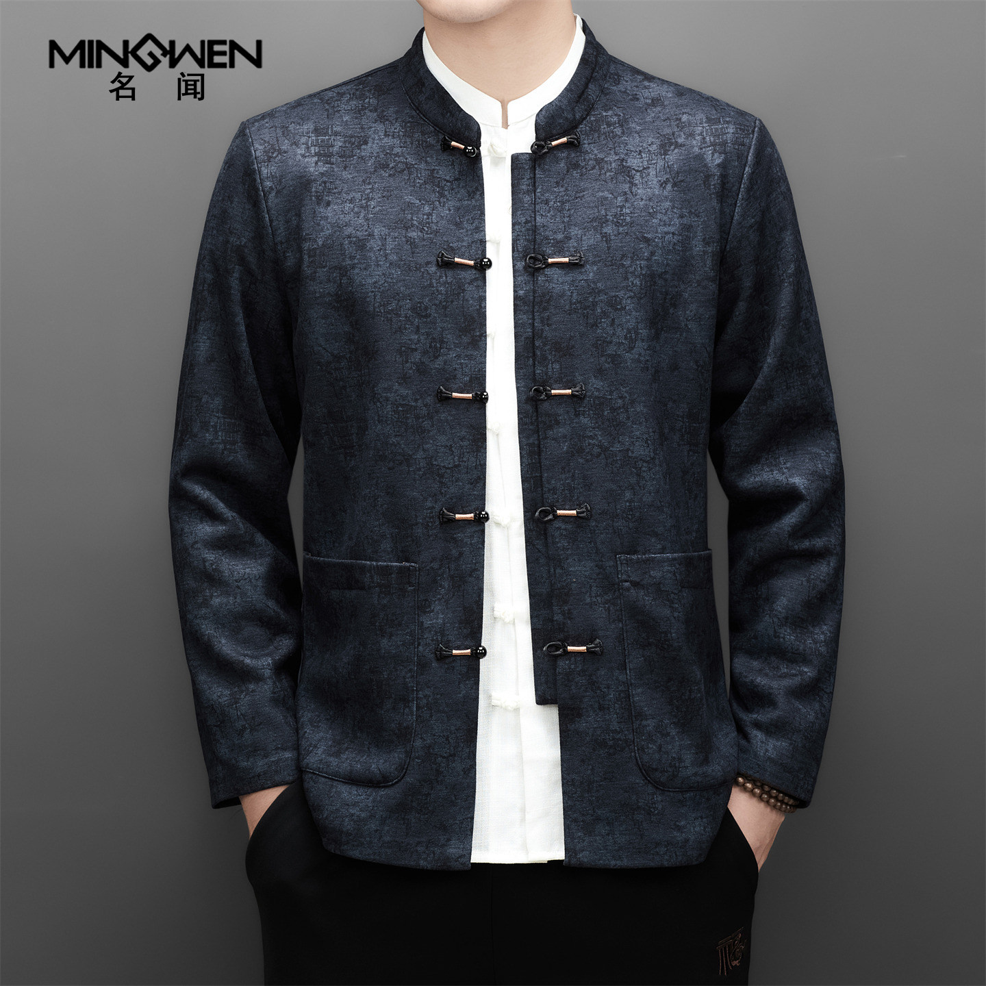 立领唐装外套男冬加绒厚款新中式国风印花高级感宽松休闲复古套装