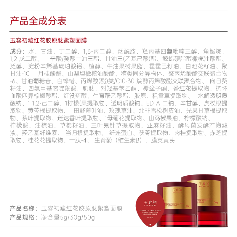 【38开门红】玉容初藏红花胶原涂抹面膜修护紧致滋养舒缓提亮抗皱