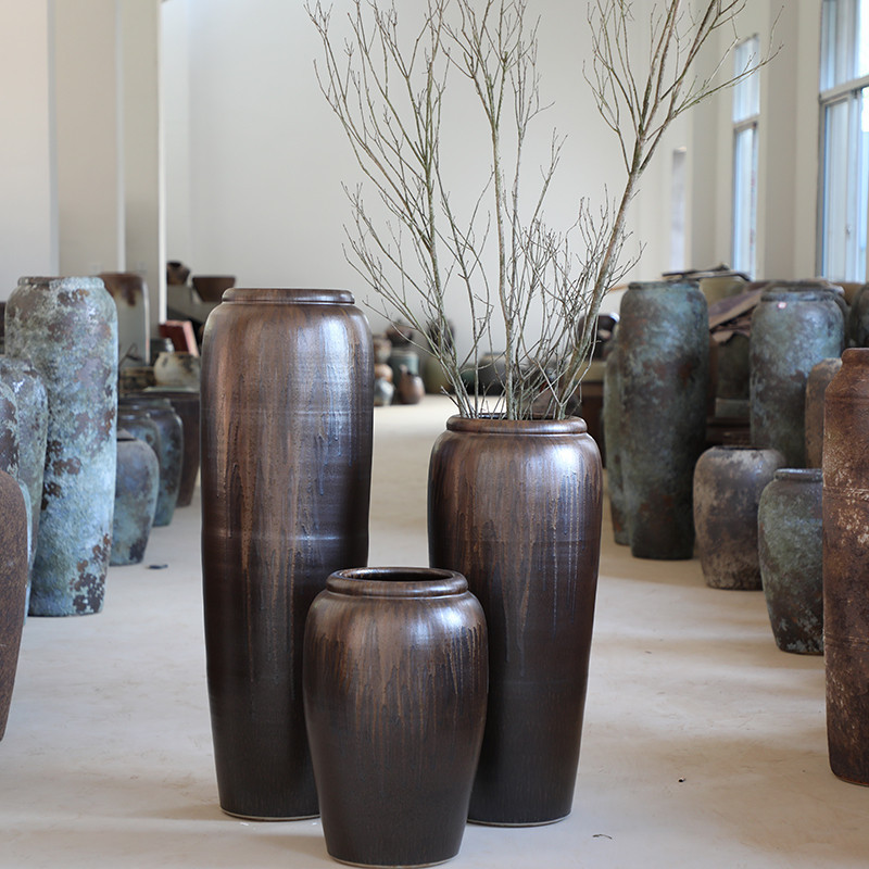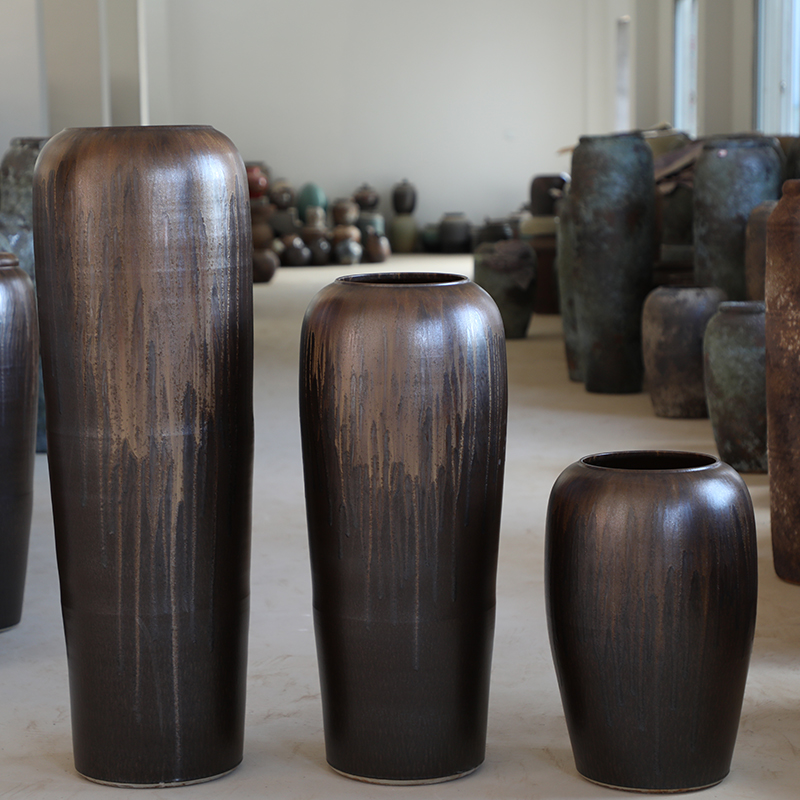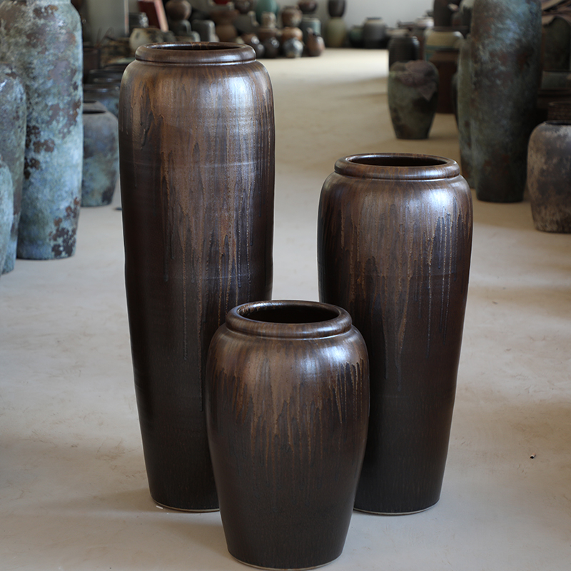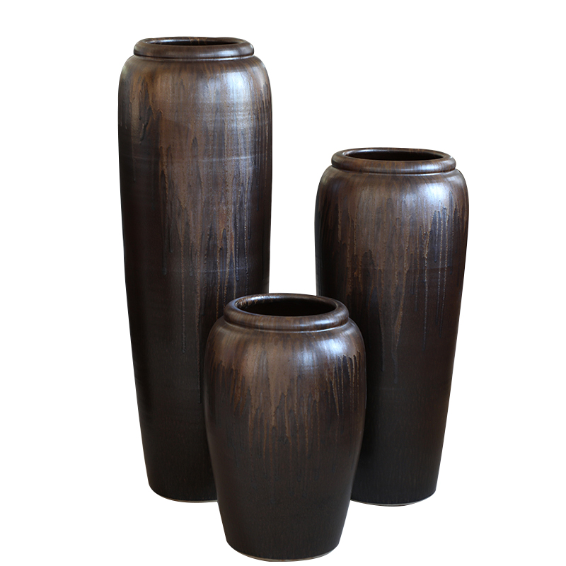 高温陶瓷土陶罐 落地家居装饰花瓶花器三件套 流金岁月粗陶摆件