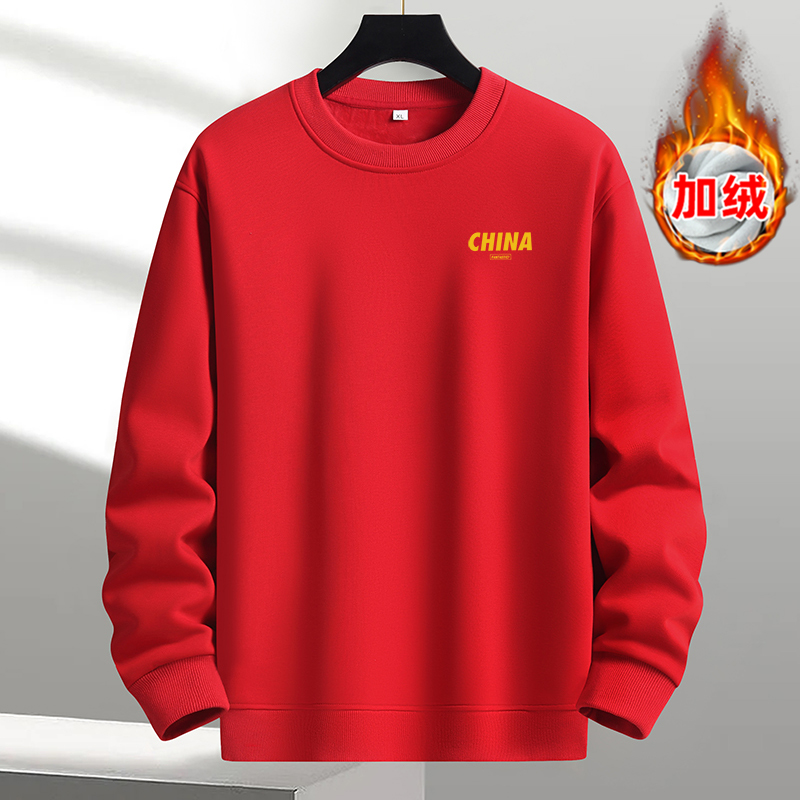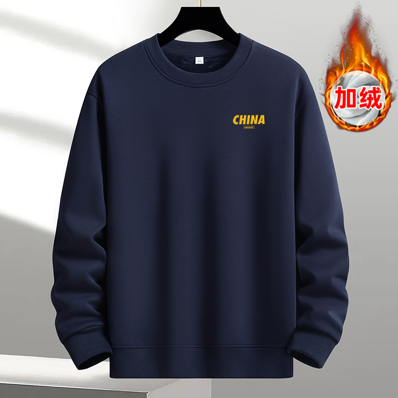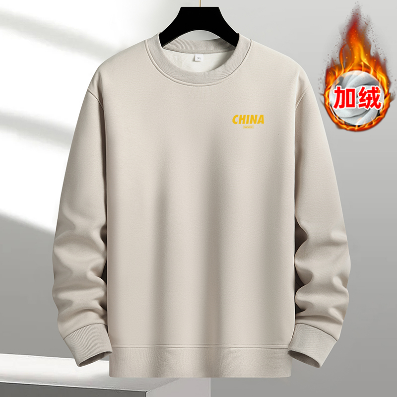 秋冬款2025卫衣男圆领中国风加绒加厚时尚潮流宽松长袖保暖打底衫
