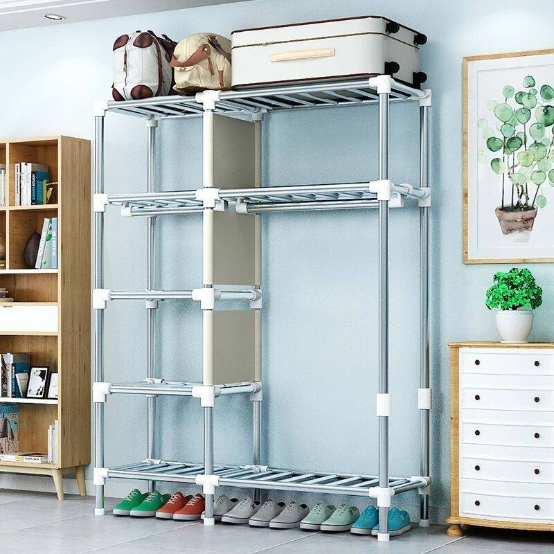 简易衣柜出租房家用卧室全钢架加粗加厚组装布衣柜结实耐用衣橱g