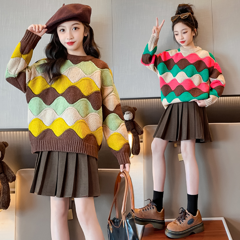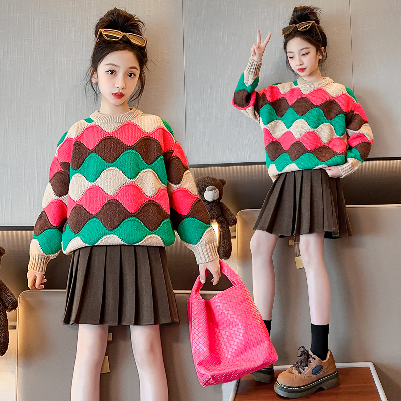 巴拉妮琪balaniqi女童毛衣2023新款秋装中大童打底针织衫保暖上衣