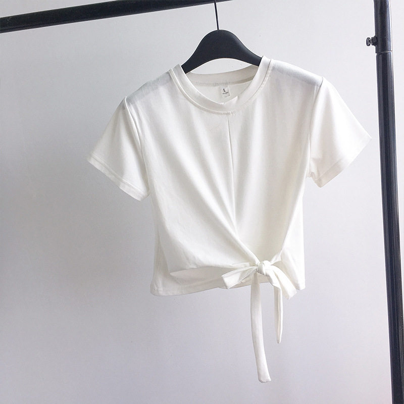 短款纯色T恤女2025夏装韩版绑带小心机露脐学生短袖体恤修身上