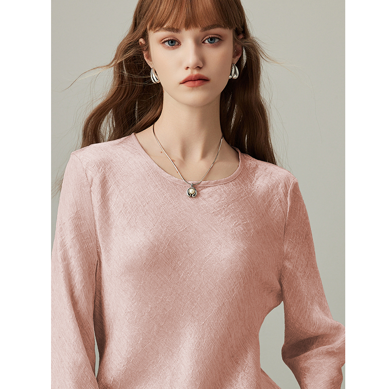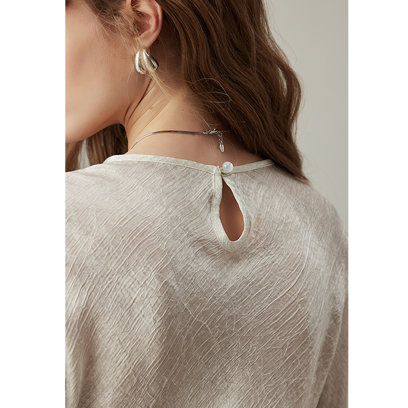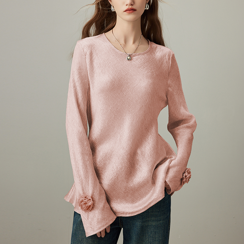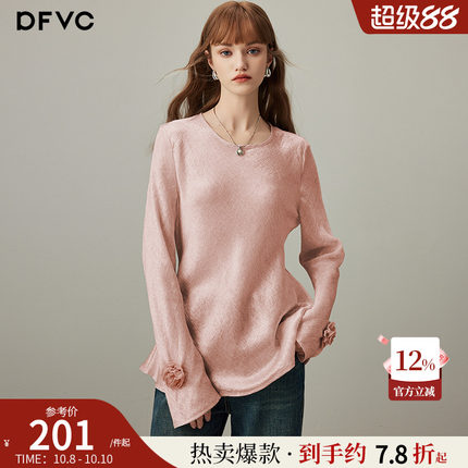 dfvc新中式国风长袖衬衫女2025年秋季新款肌理感喇叭袖衬衣打底衫