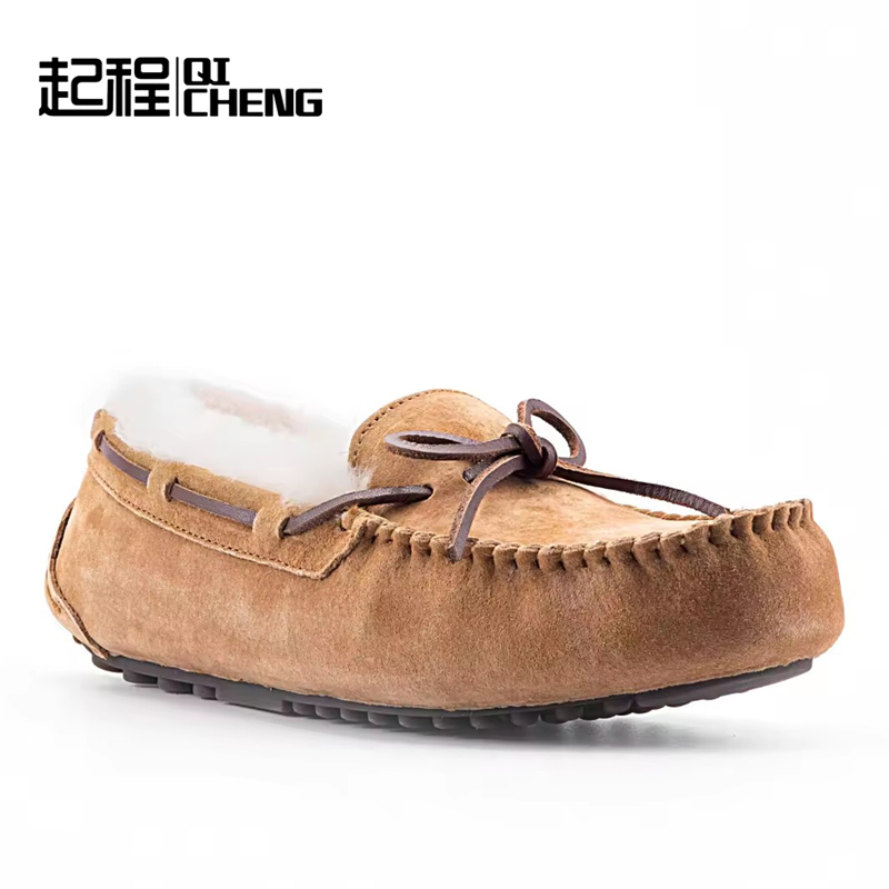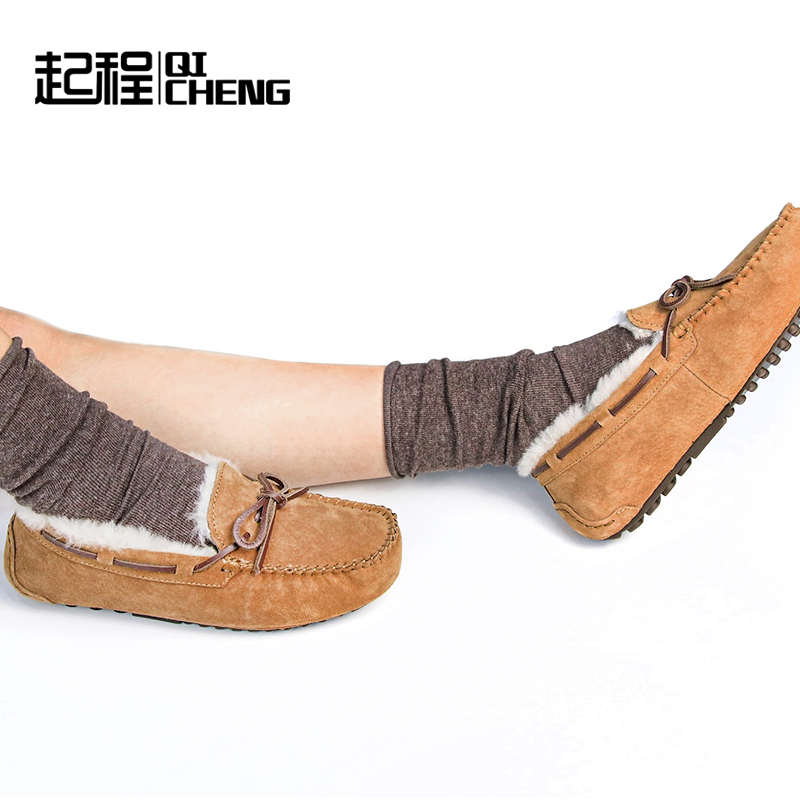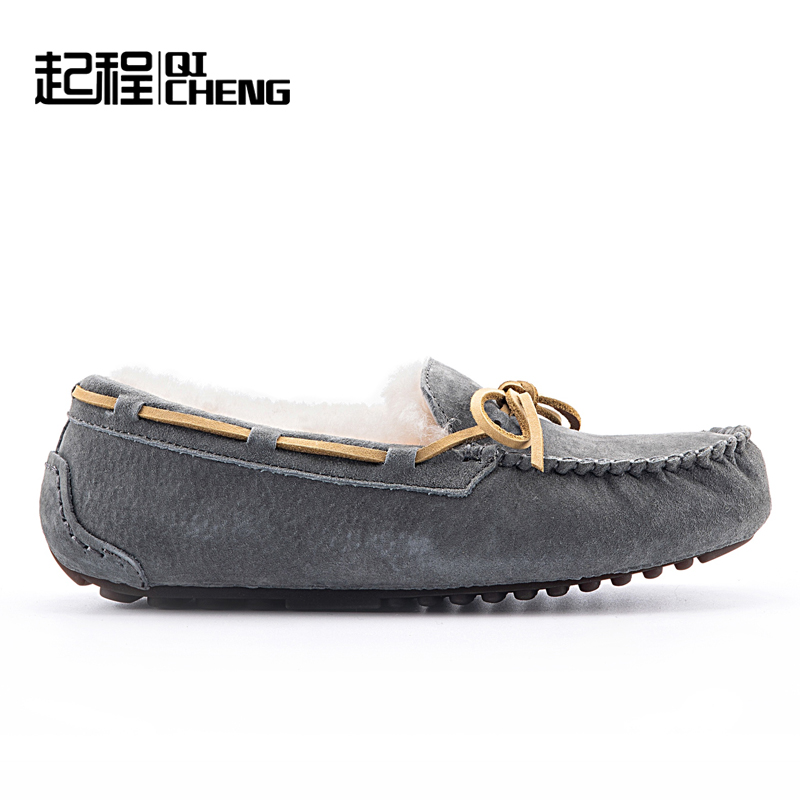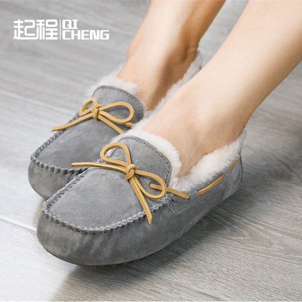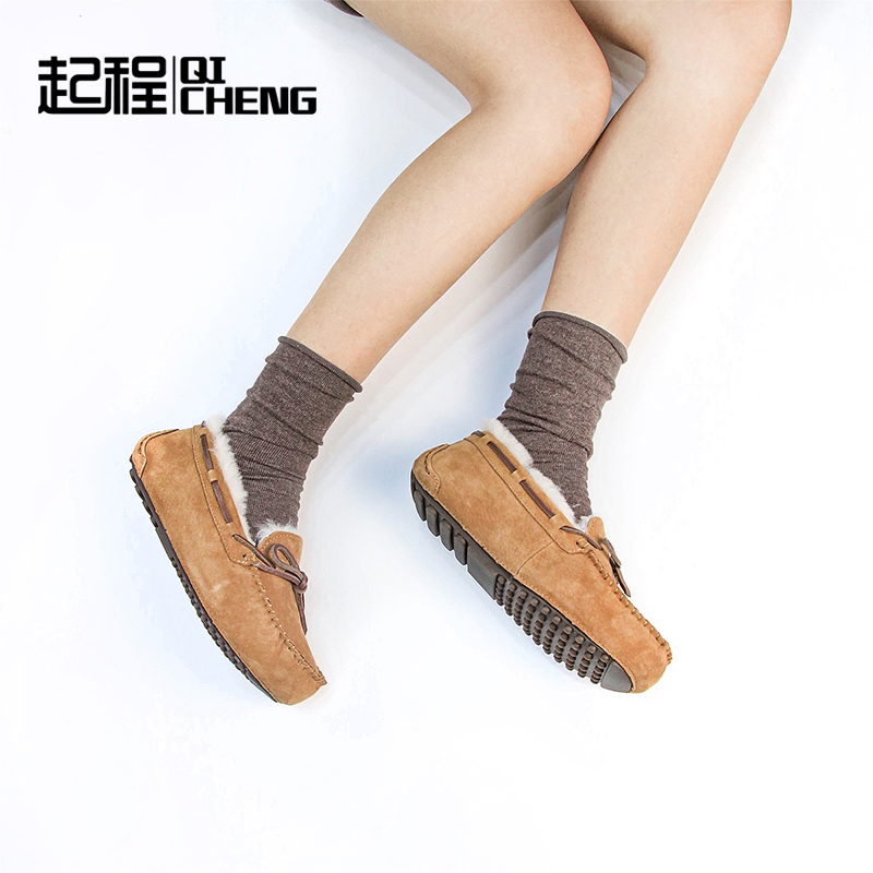 隆丰出品/起程女士休闲舒适经典平底时尚皮绳羊毛豆豆单鞋WUL2919
