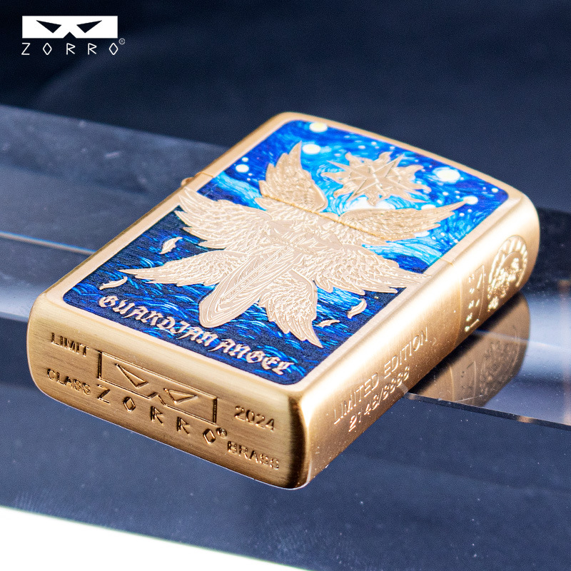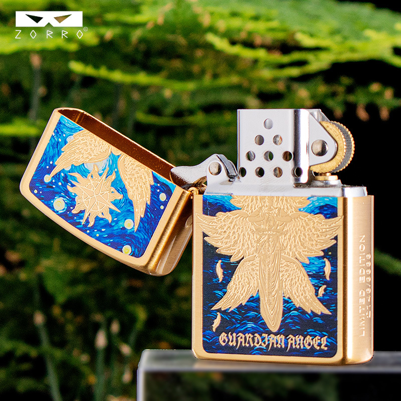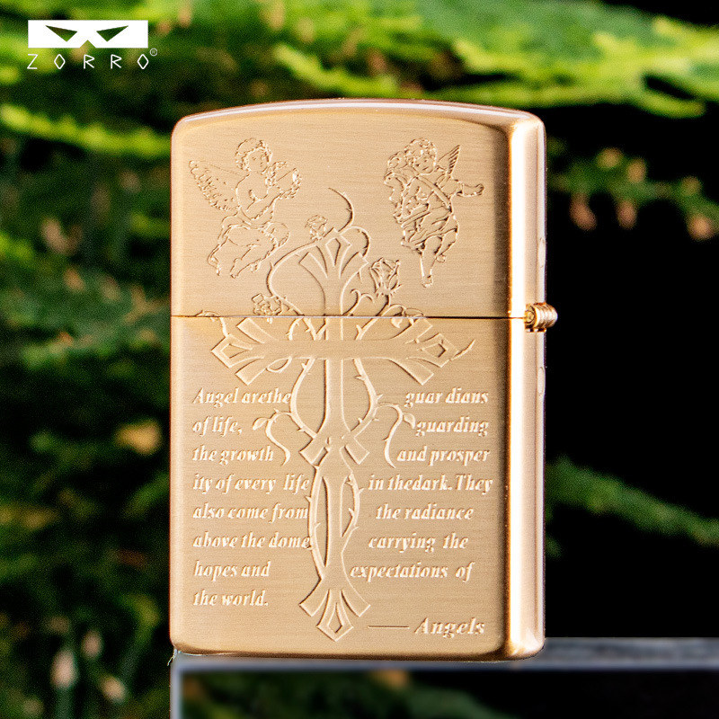 ZORRO佐罗正品纯铜砂轮防风砂轮煤油打火机镀金色空下的守护天使