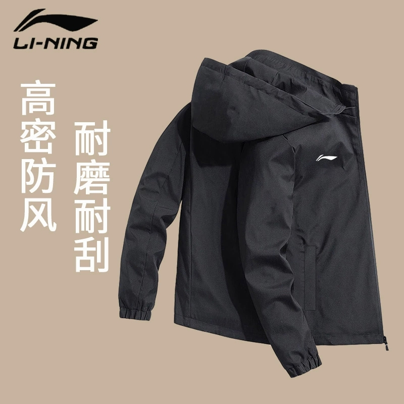 李宁运动外套男风衣春秋季2024新款防风连帽休闲宽松开衫夹克上衣