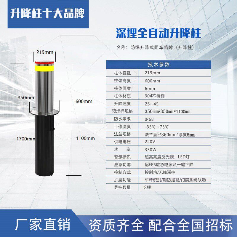 全自动液压升降柱电动伸缩地桩停车场不锈钢拦车路障遥控防撞路桩