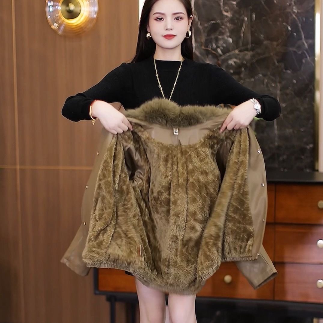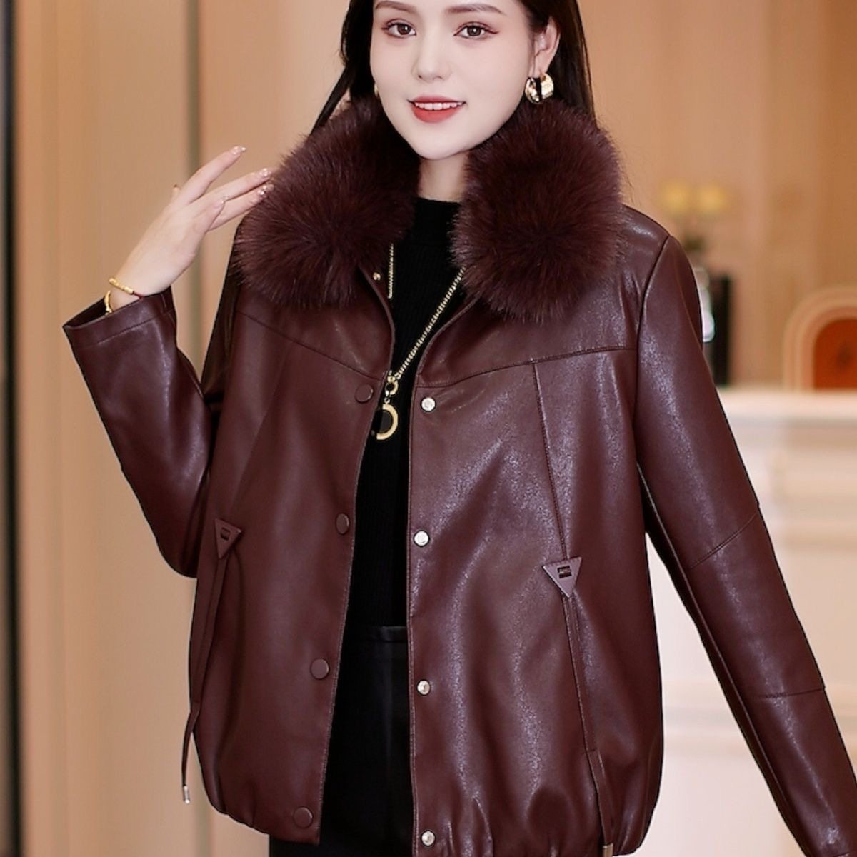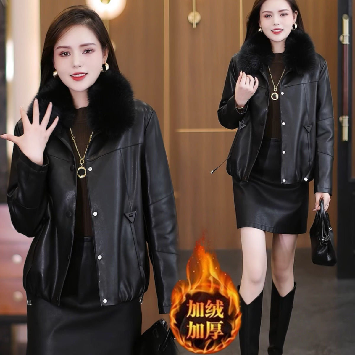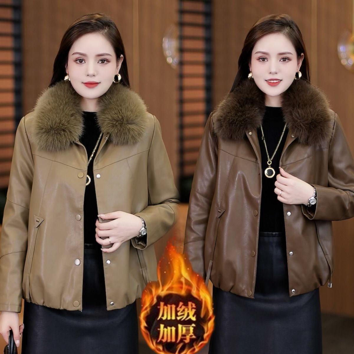 加绒皮衣妈妈冬季短款外套新款中老年洋气加厚时尚保暖PU皮夹克女