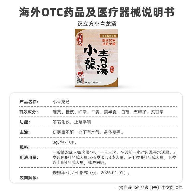 汉立方小青龙汤盒装感冒发热咳嗽痰多身体水肿中药颗粒官方旗舰店