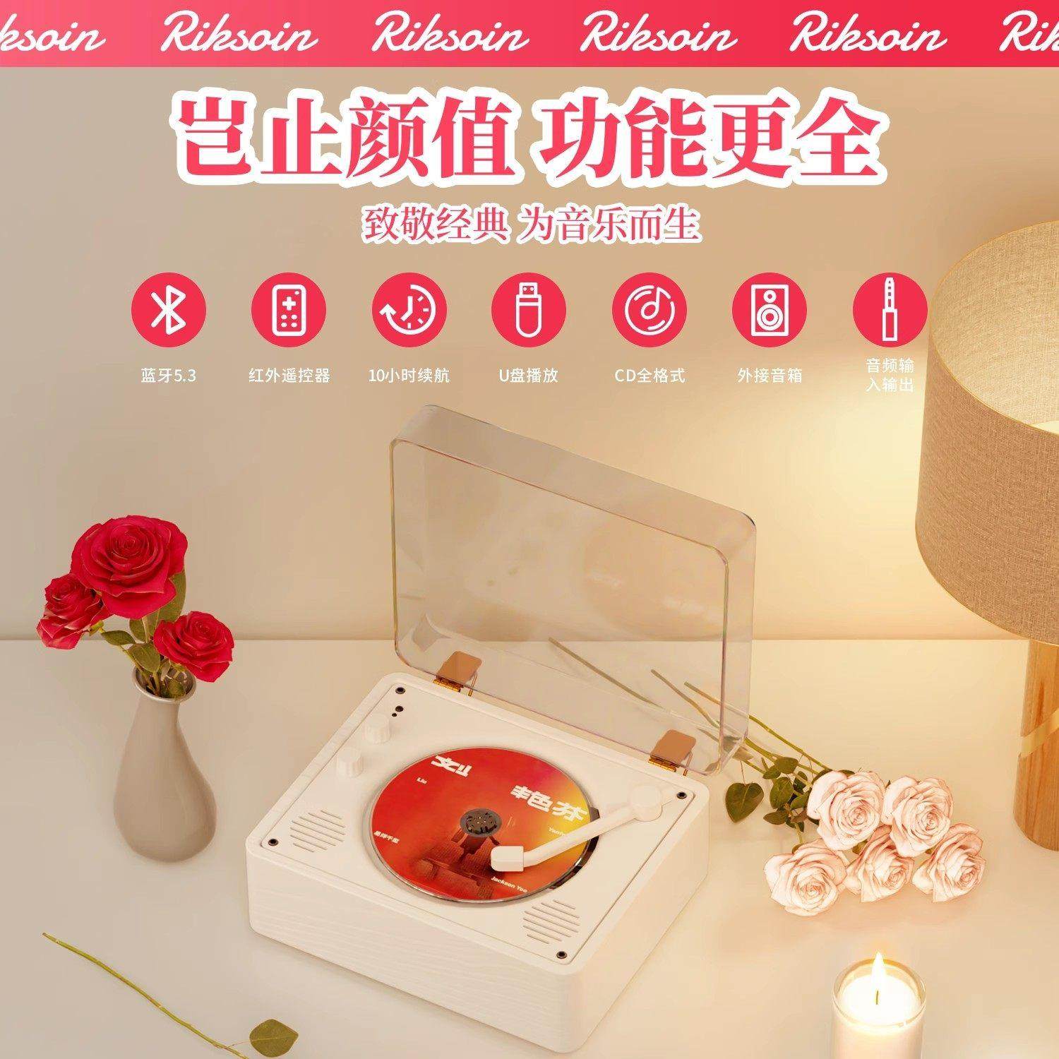 复古cd机便捷式蓝牙音响播放器专辑光碟黑胶唱片机一体播放器便携