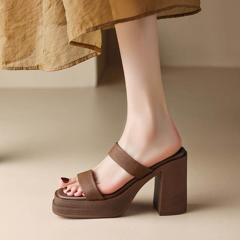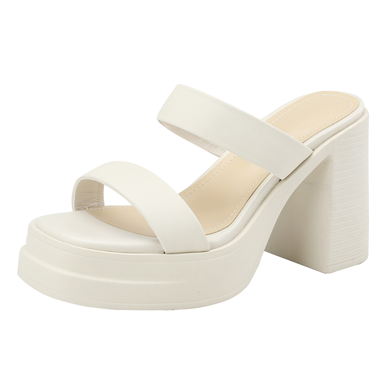 外穿防水台粗跟露趾凉拖高跟拖鞋