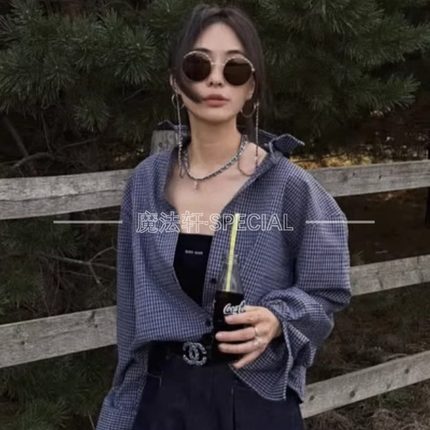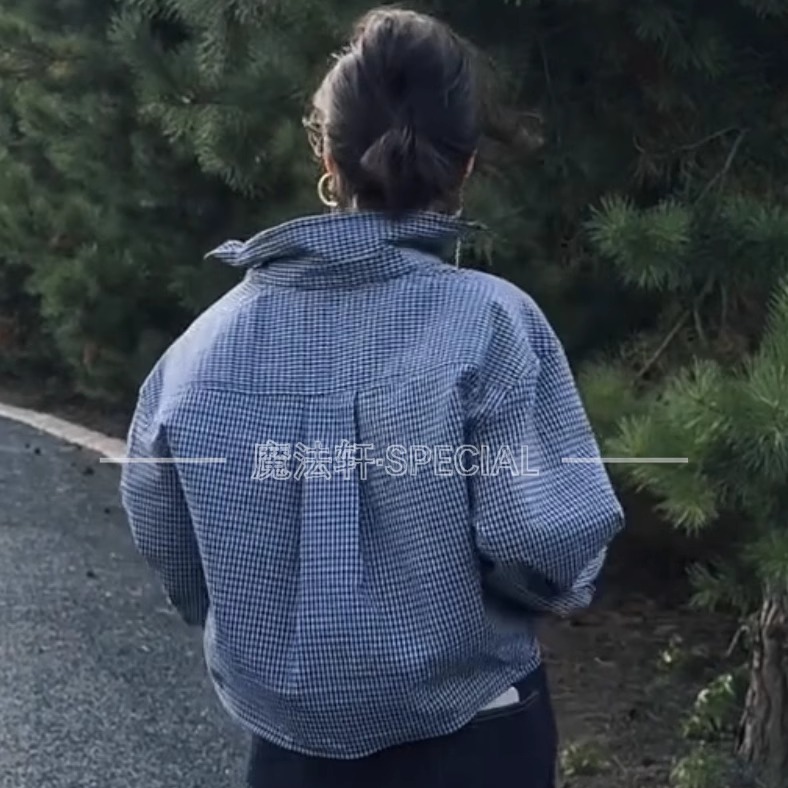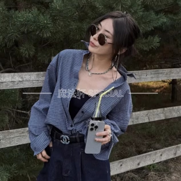 格子衬衫长袖女2025新款秋季翻领单排扣衬衣高端欧货洋气上衣潮Q