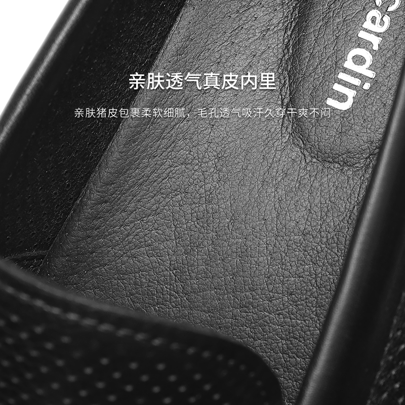 皮尔卡丹头层牛皮透气冲孔乐福鞋