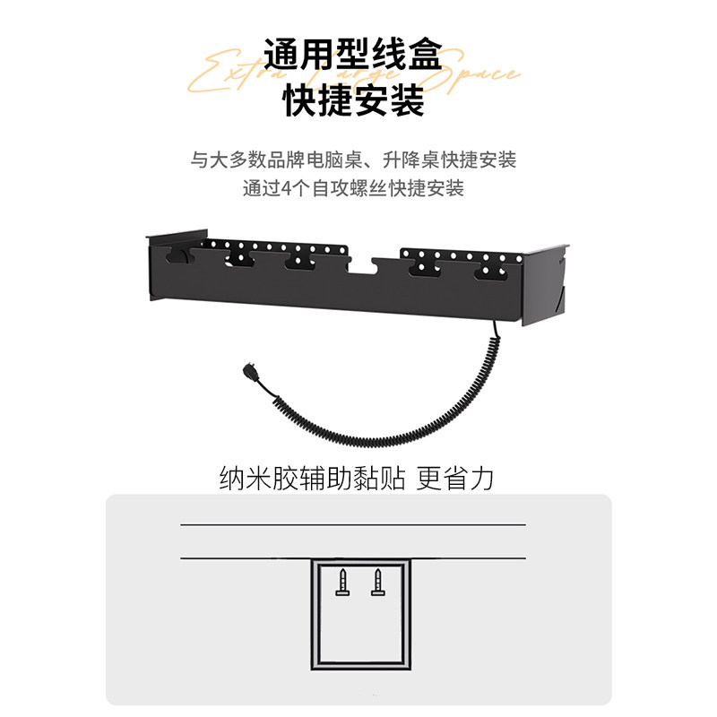 ZOMO 电源管理控制盒 升降桌理线架插排电线固定收纳槽电脑理线器