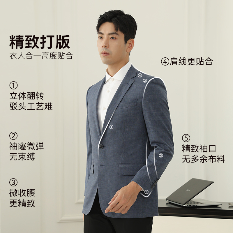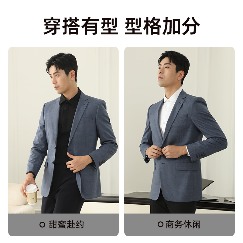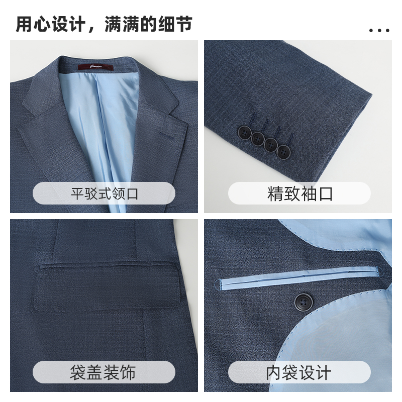 乔治白春秋男士羊毛西服雾霾蓝两粒扣平驳领修身上衣后中开衩