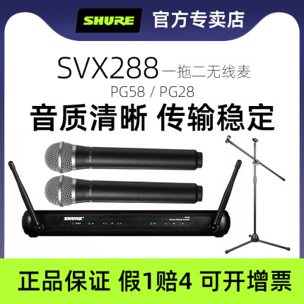 Shure/舒尔SVX288/PG58 PG28专业一拖二无线动圈话筒演出直播会议