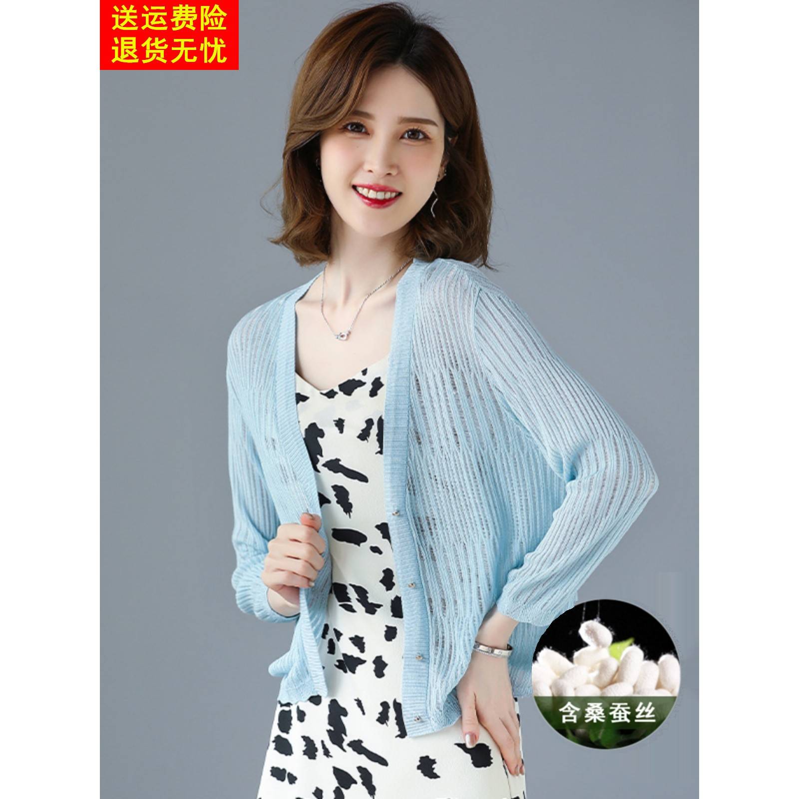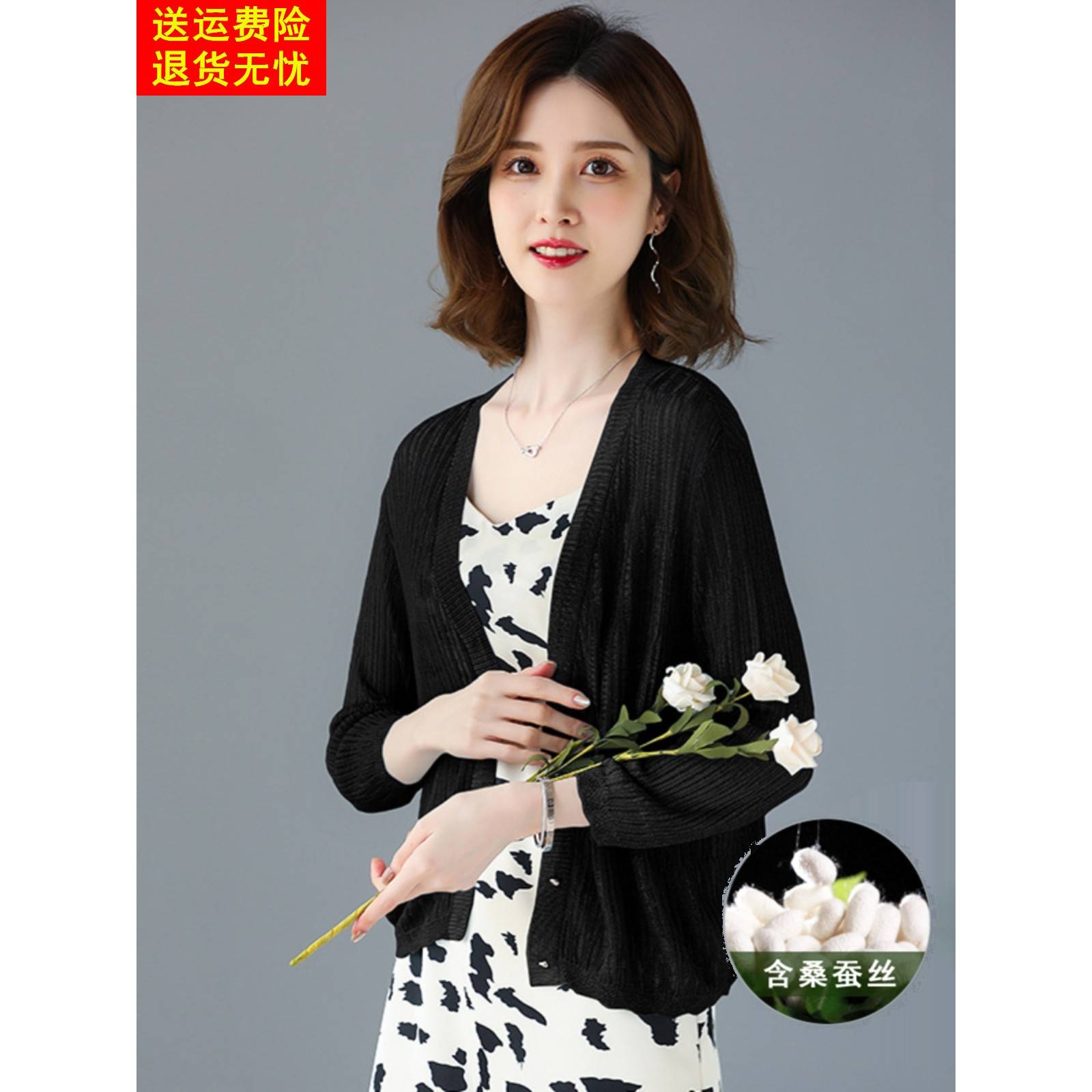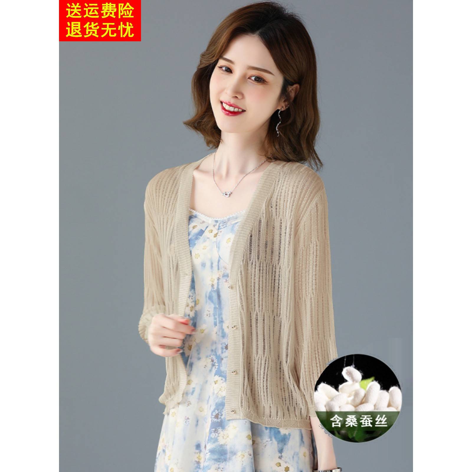 白色冰丝镂空针织防晒衣女夏薄开衫短款坎肩配吊带裙子外搭小披肩