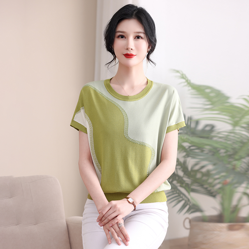 中年妈妈装夏装冰丝短袖T恤中老年女装套装洋气小衫夏季薄款上衣