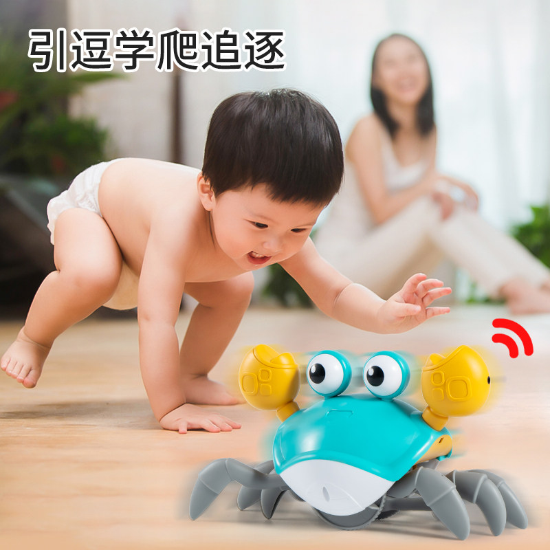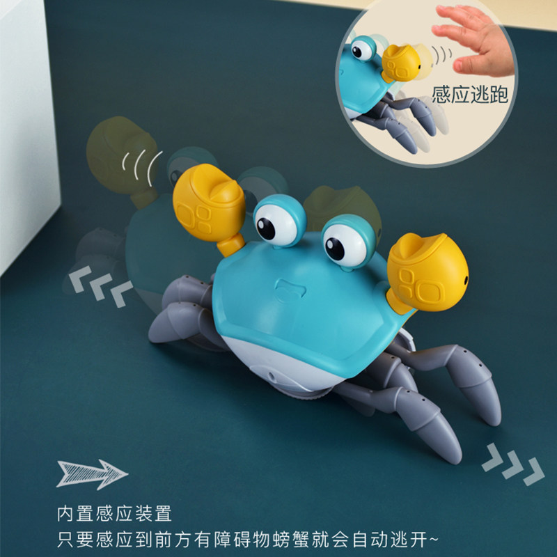 婴儿螃蟹玩具电动感应会唱歌跳舞的玩具仿真动物宝宝螃蟹爬行玩具
