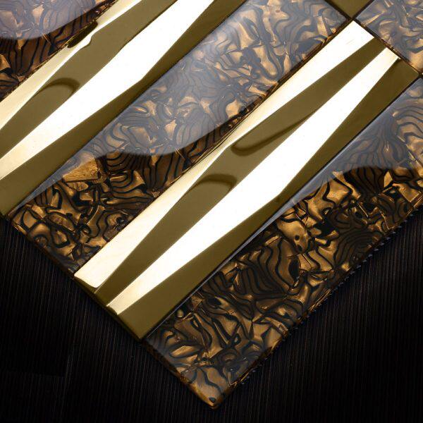 欧式古典长条金属玻璃马赛克瓷砖会所餐厅酒店乱纹艺术装饰背景墙