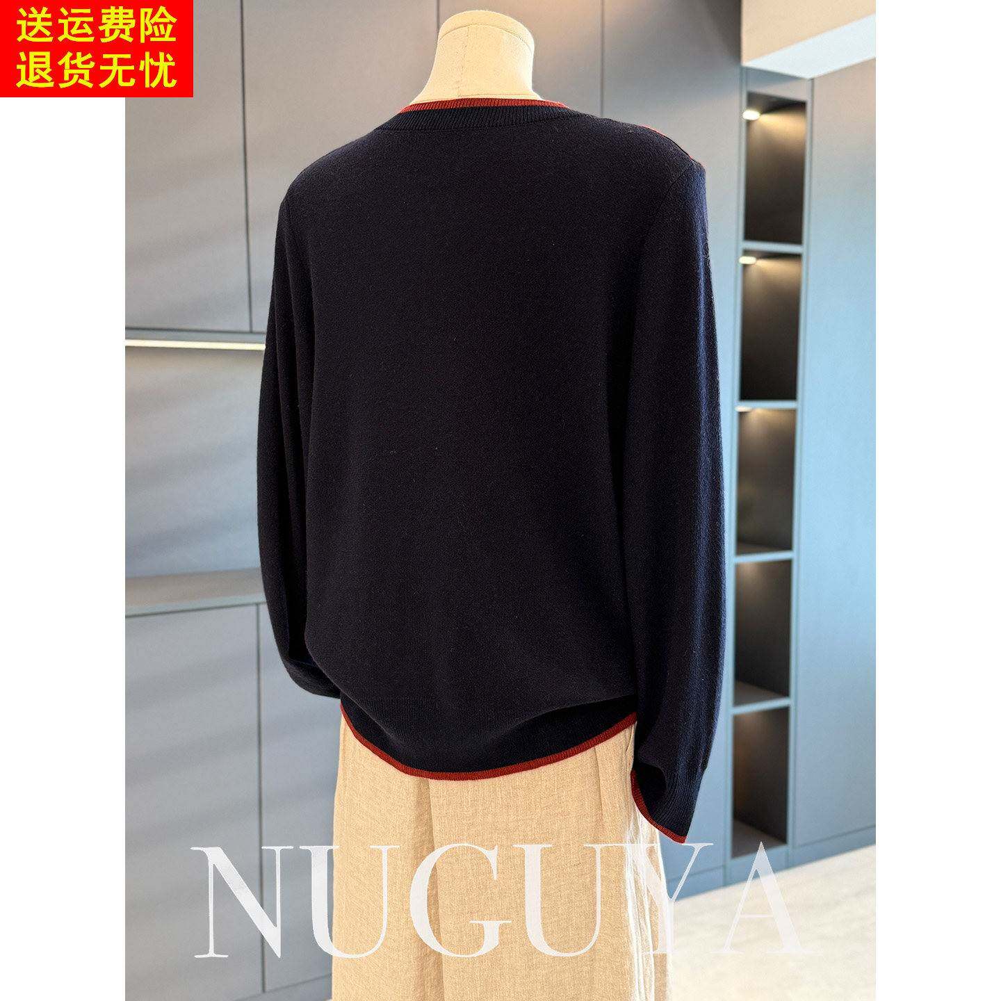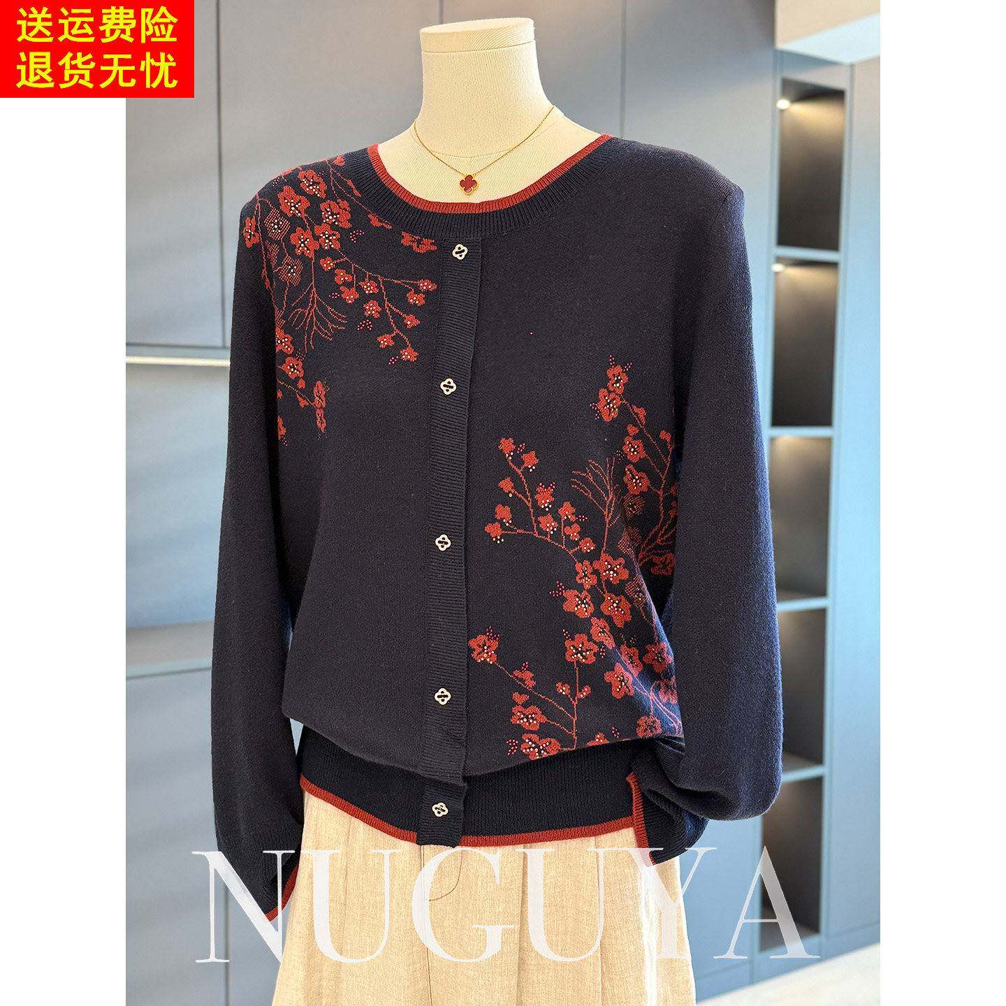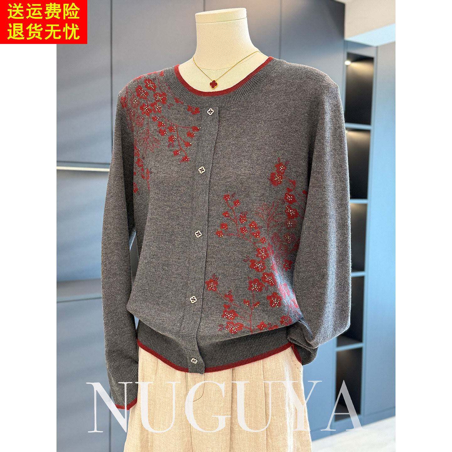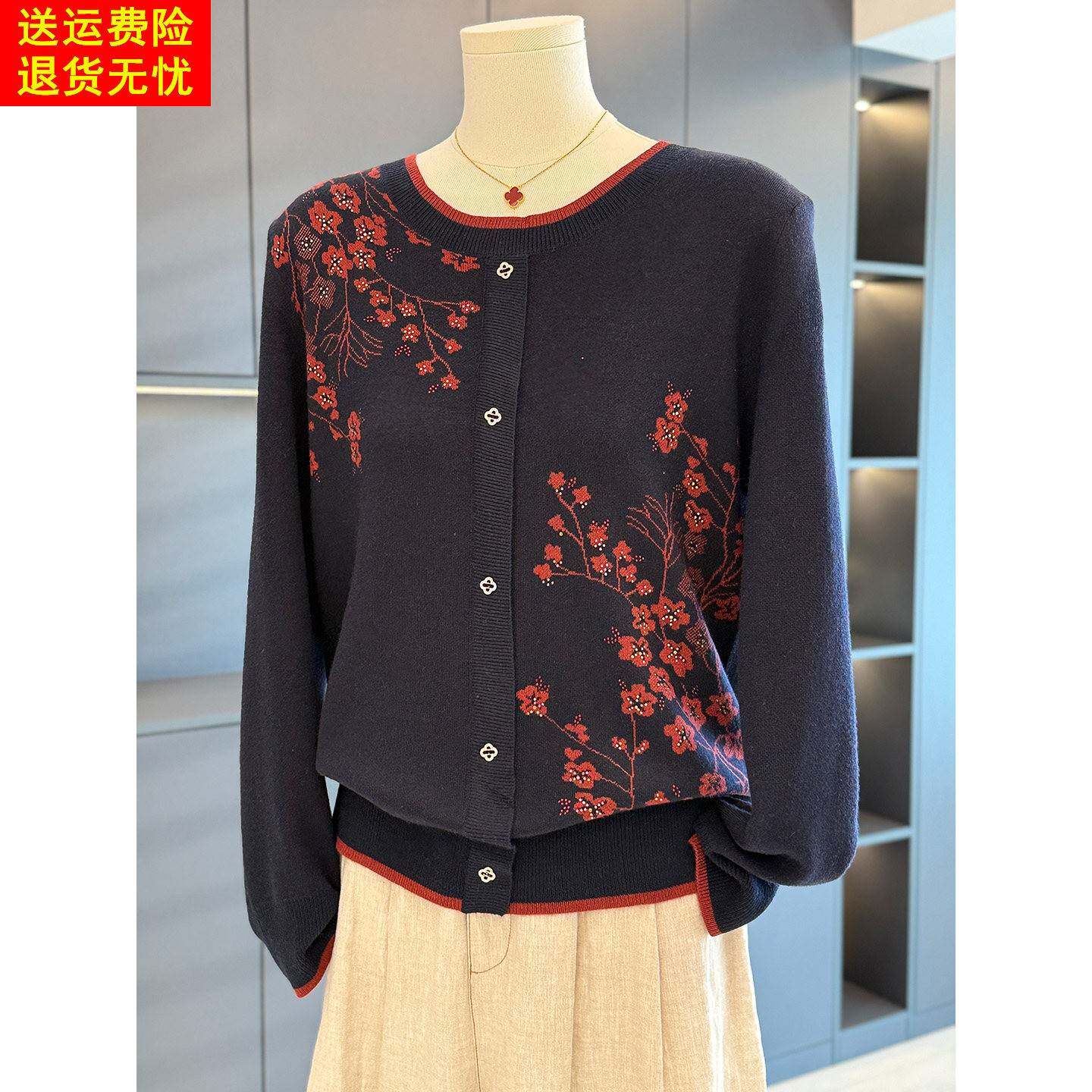 时尚休闲中老年针织衫女圆领秋冬新款上衣气质百搭妈妈装毛衣打底